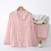 spring and autumn pure cotton double-layer gauze women's outer plaid pajamas suit simple japanese style thin summer loungewear