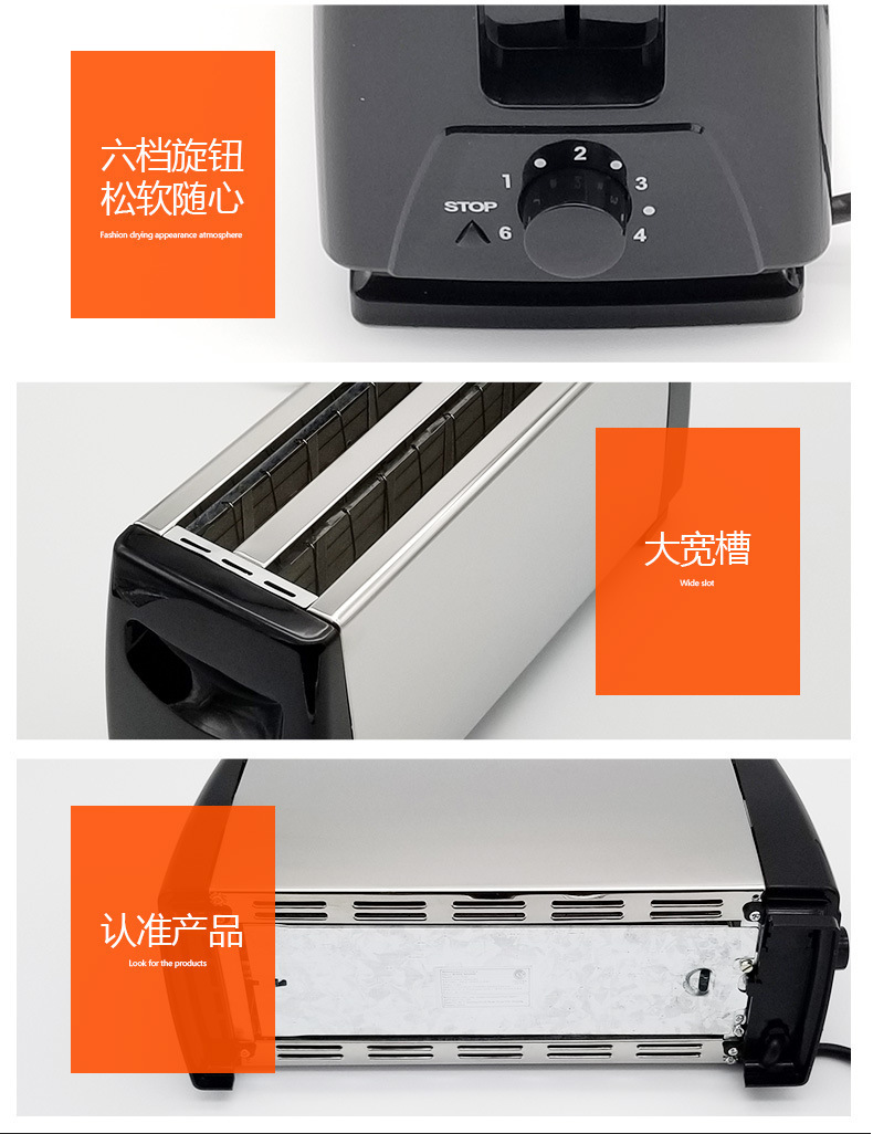 Stainless Steel Bimetal Toaster with Four Slides, Fully Automatic Bread Oven, Toaster for Breakfast, Toaster