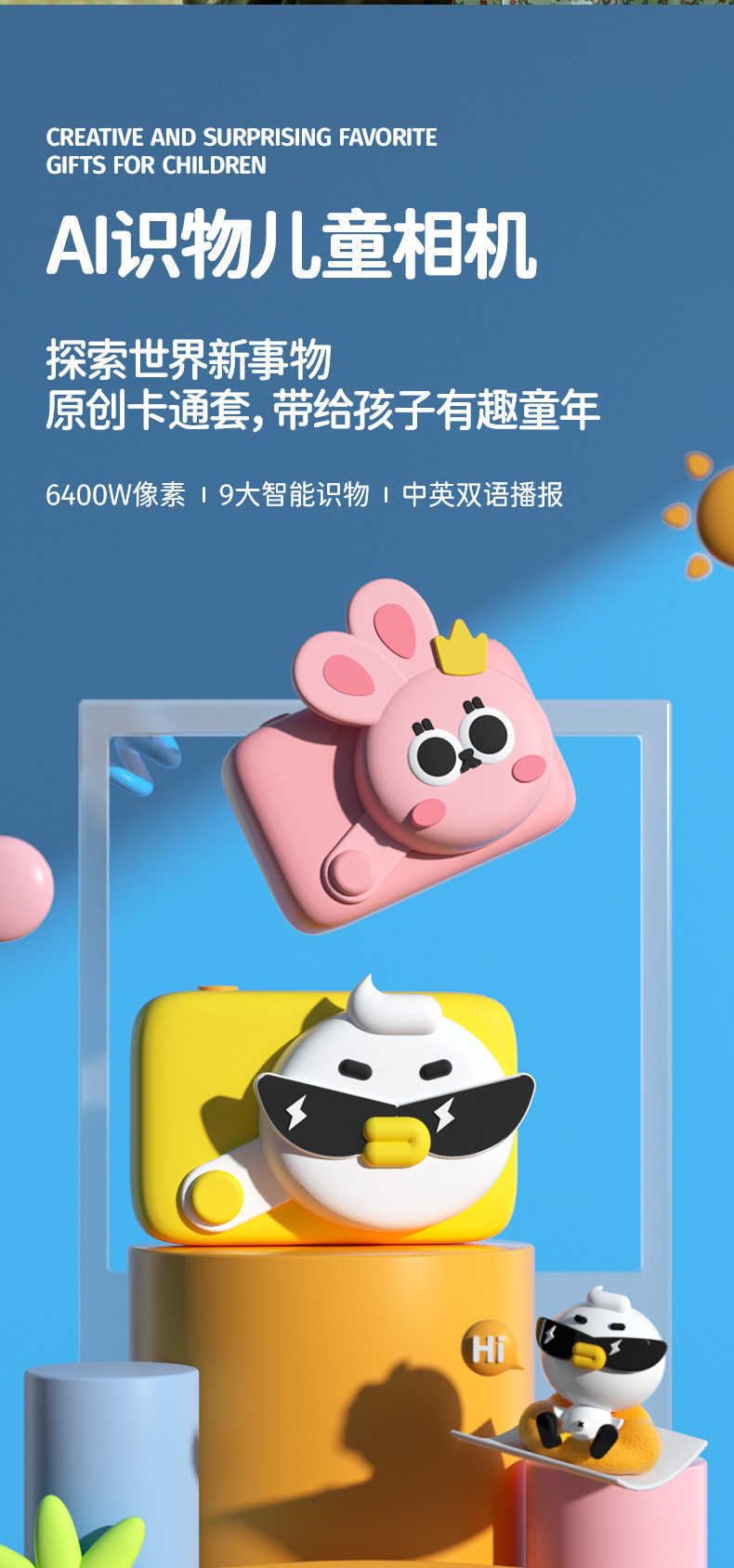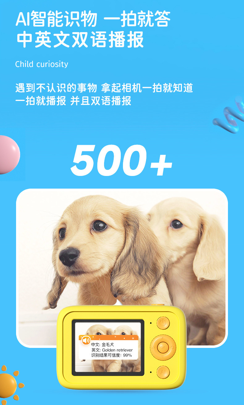 new ai knowledge children's camera chinese and english broadcast 64 million hd slr science and education digital camera toys