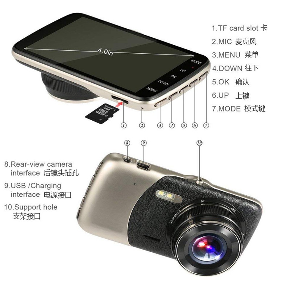 e85 car driving recorder 4-inch hd night vision driving recorder dual lens double recording factory wholesale