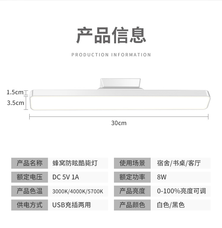white (exclusive dimming and color-changing + eye protection soft light) dual-purpose charging and plug-in + thread