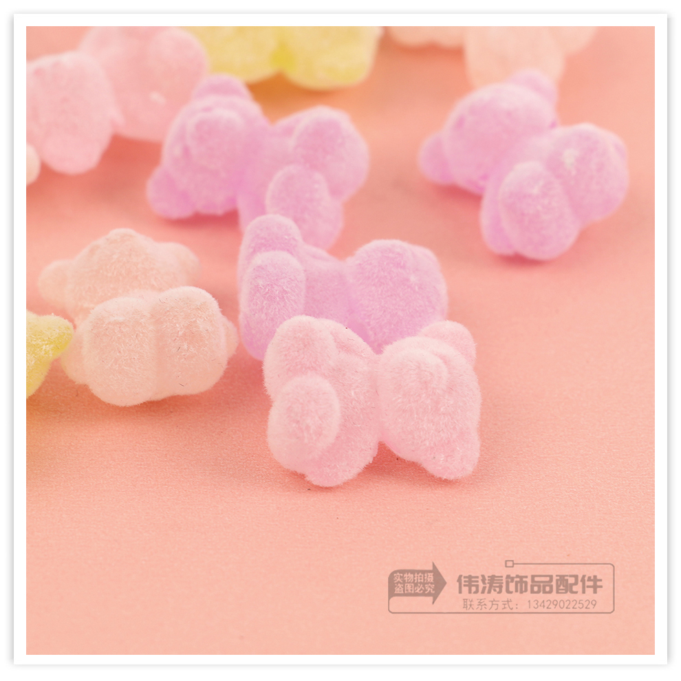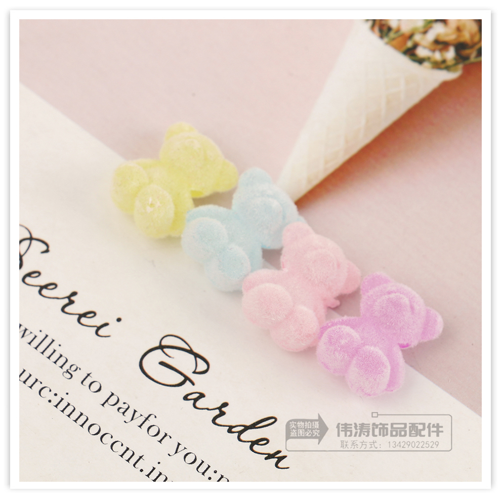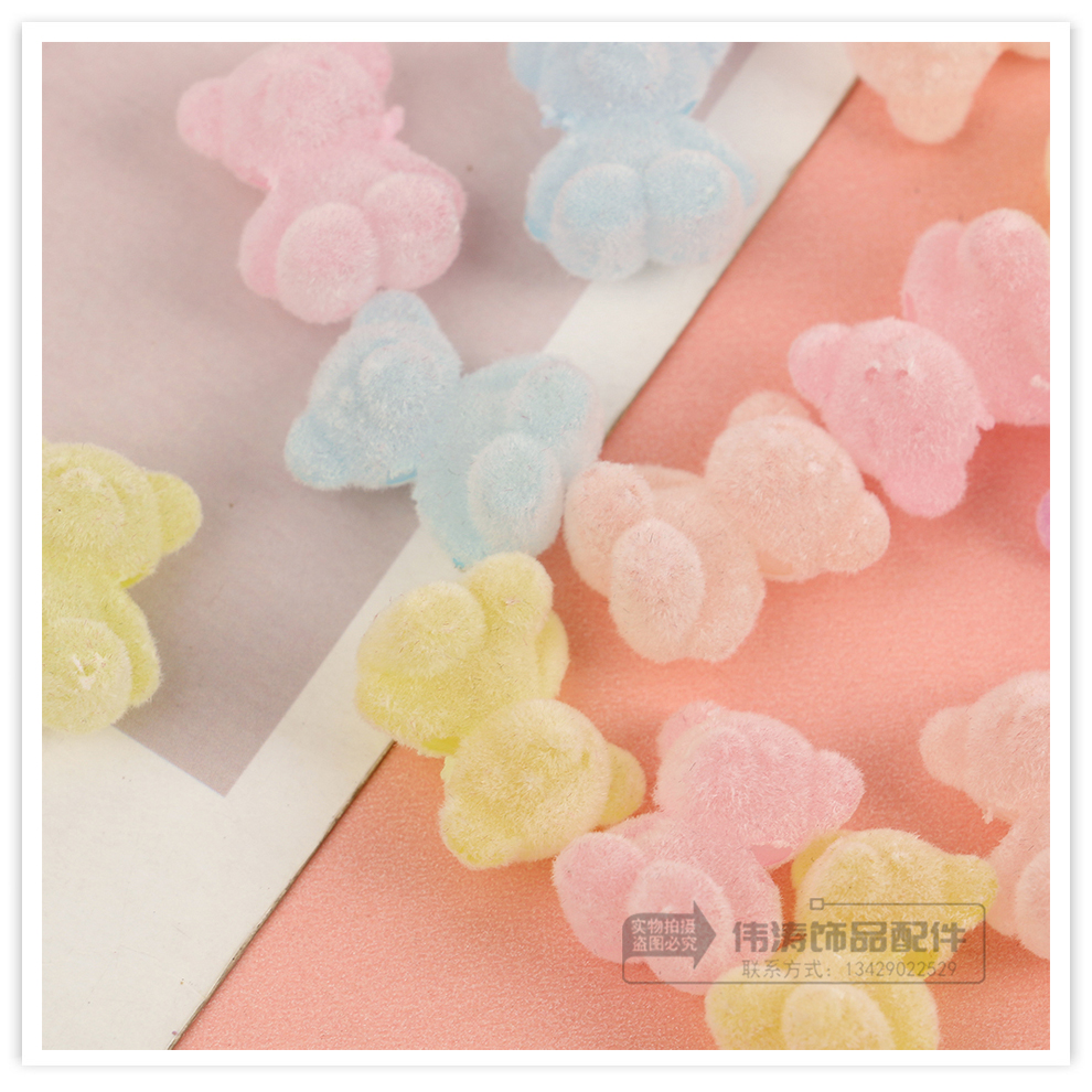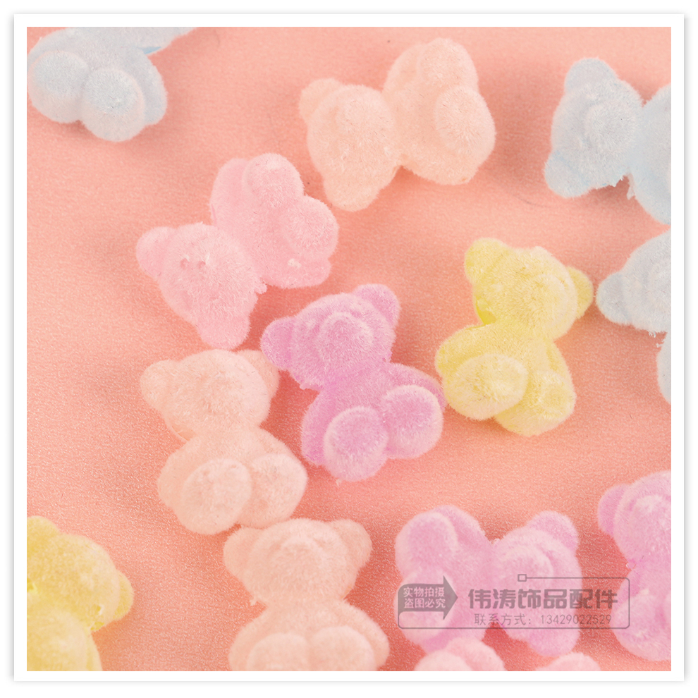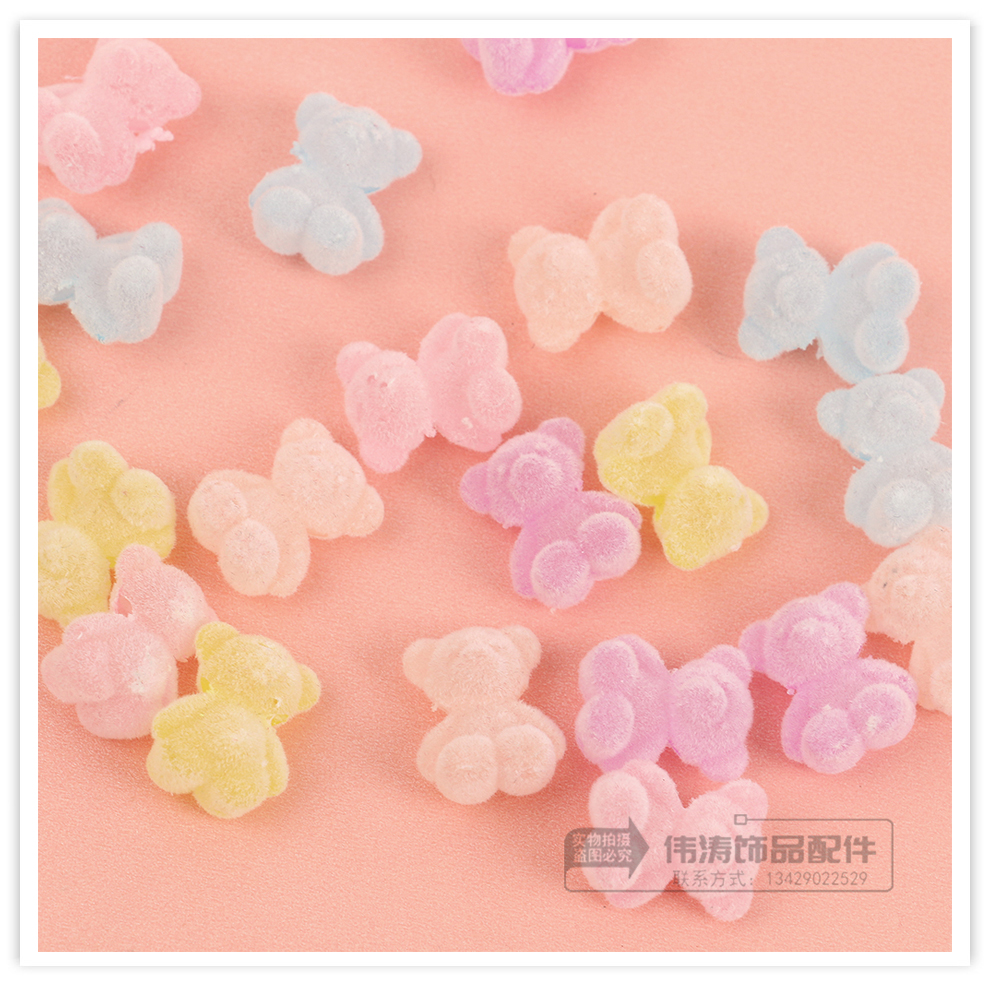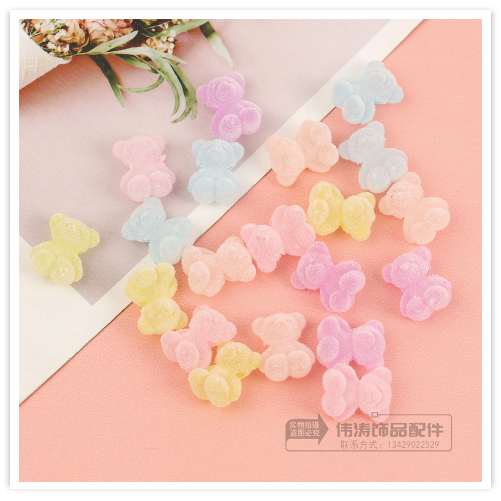 new light color cute cartoon flocking plush soft candy bear cross hole beaded diy jewelry accessories materials 中文版