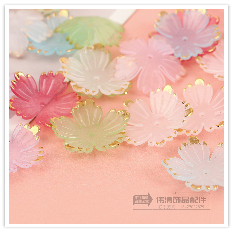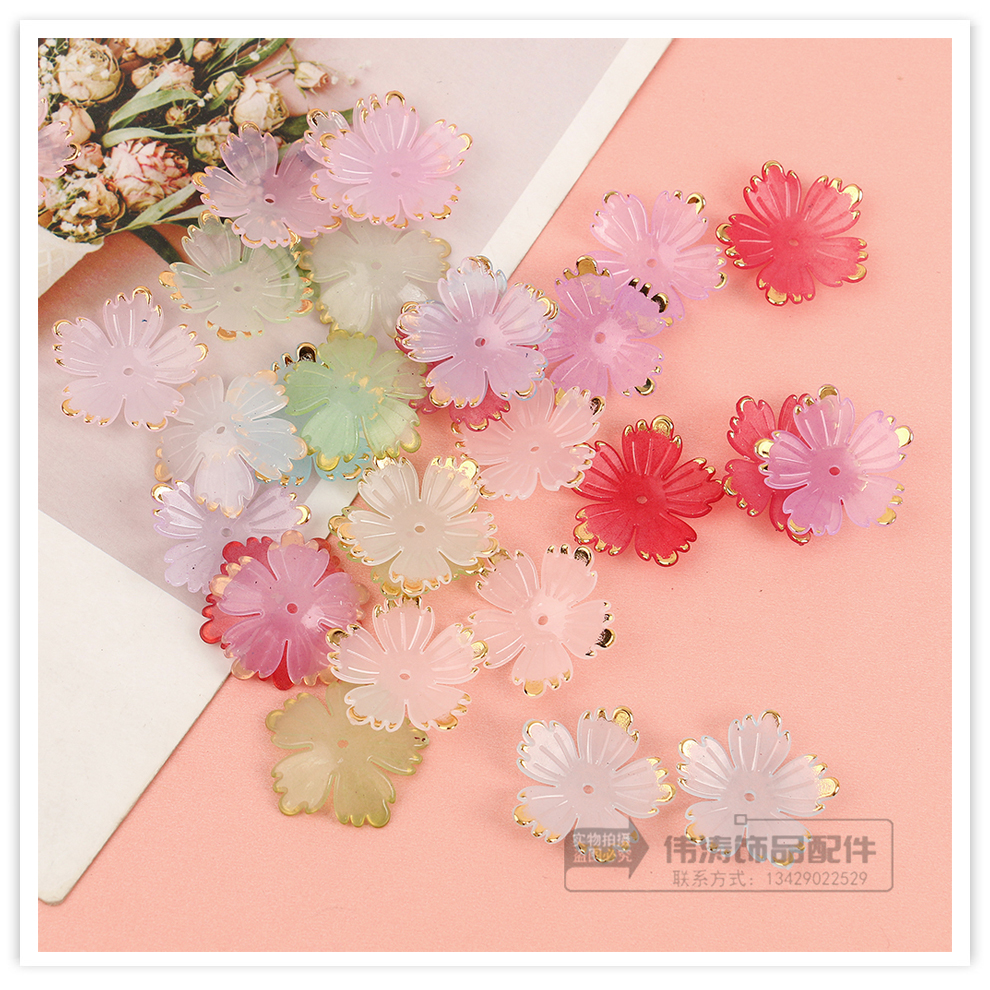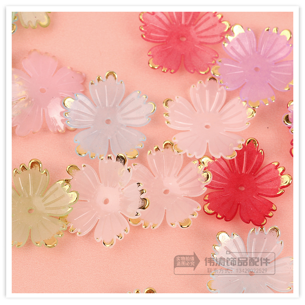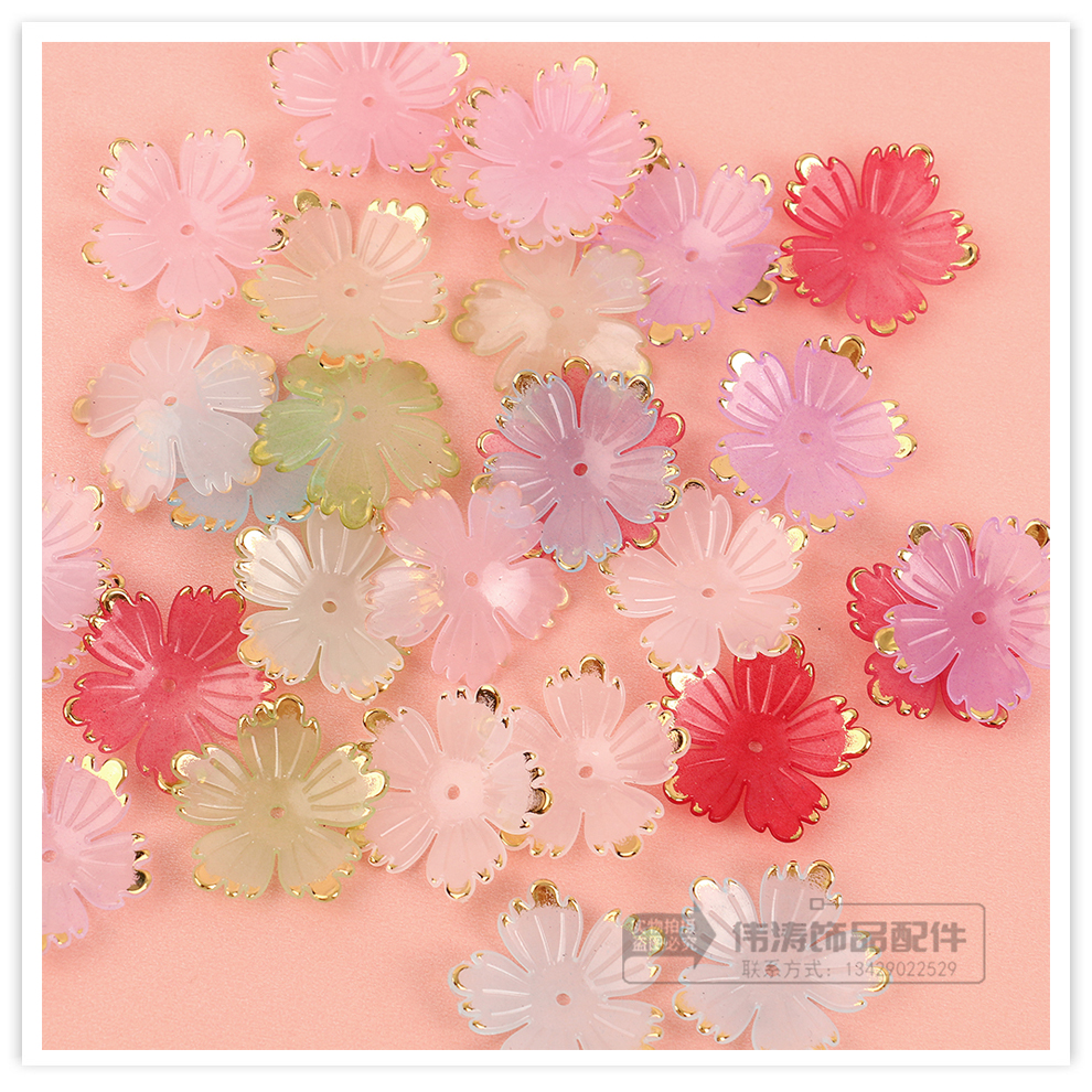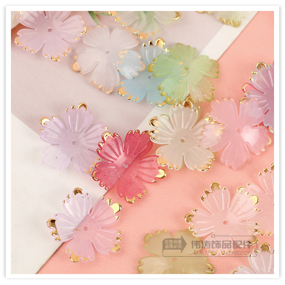 24mm bronzing five-pointed flower petal accessories color handmade diy bead accessories mobile phone charm bracelet beads material 中文版