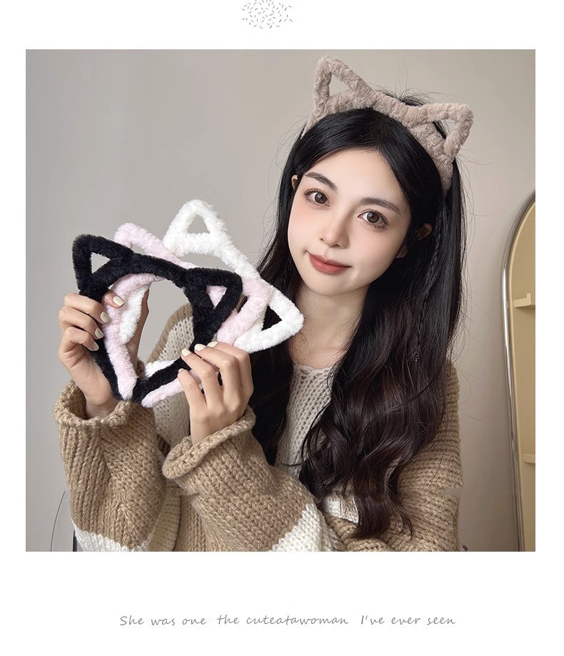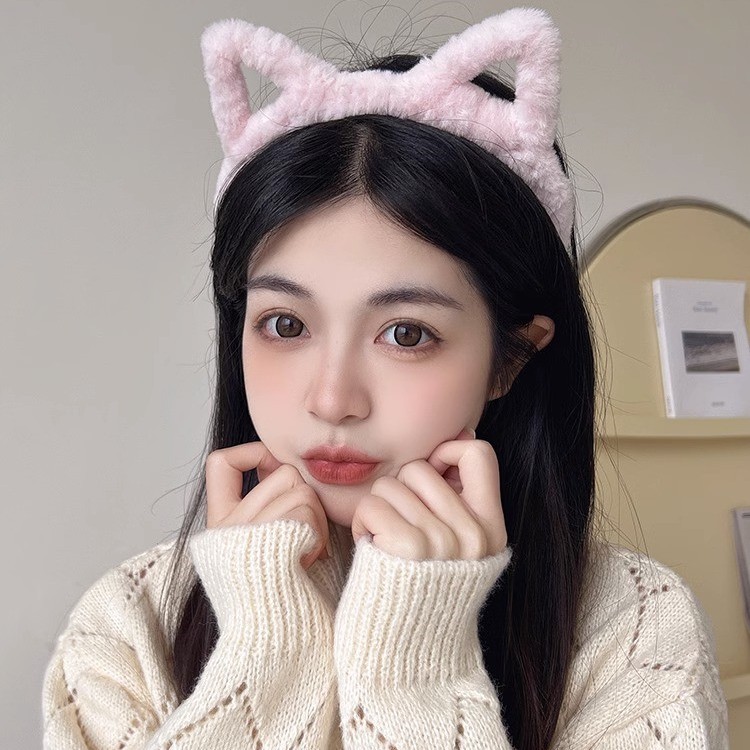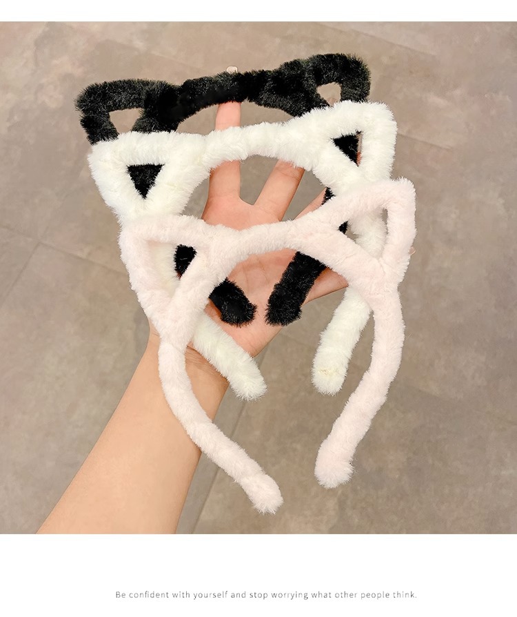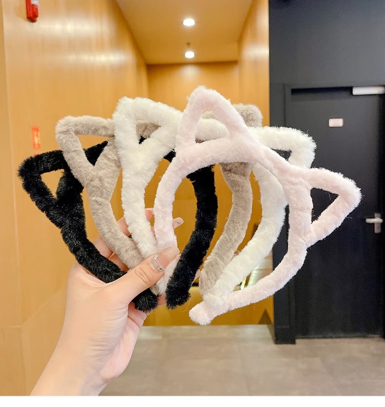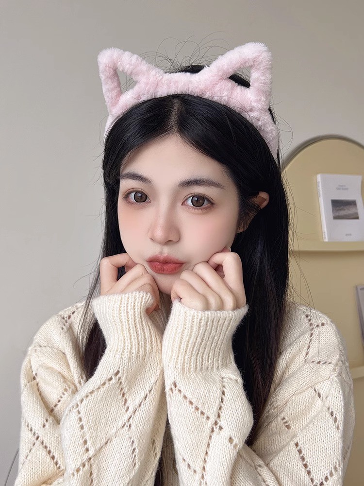 hollow ears headband girl's heart hairpin cute plush headband face wash mask hair band hair clip headdress