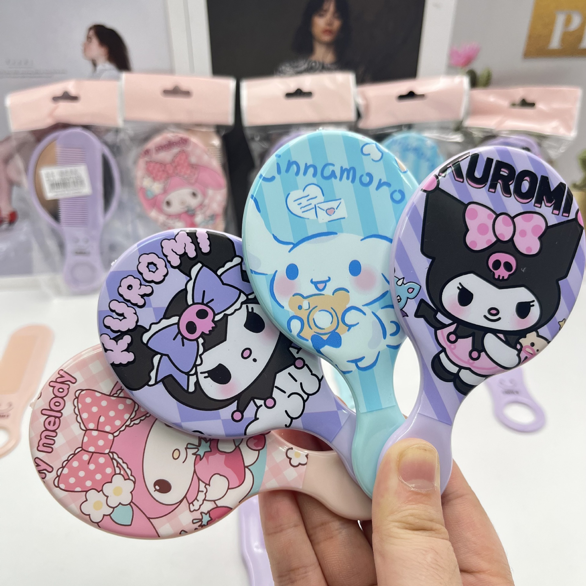 cute good-looking clow m melody cinnamoroll babycinnamoroll hand-held comb mirror portable makeup mirror comb with makeup