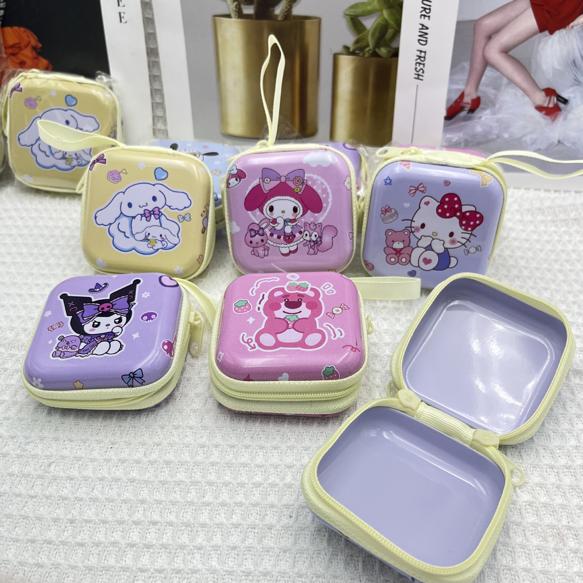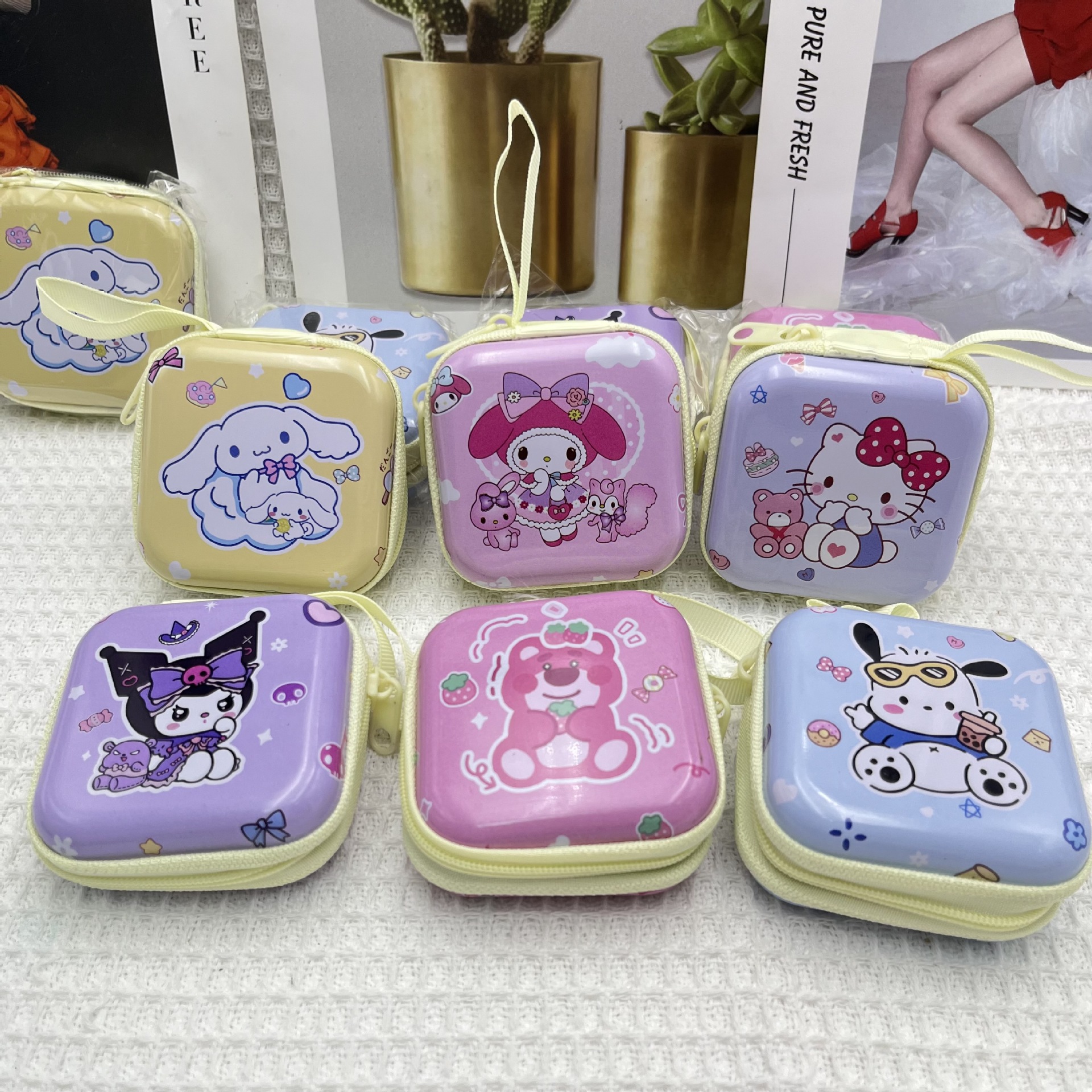 sanrio horse iron mouth coin purse clow m pom pom purin pacha dog headset storage box portable with hanging small box