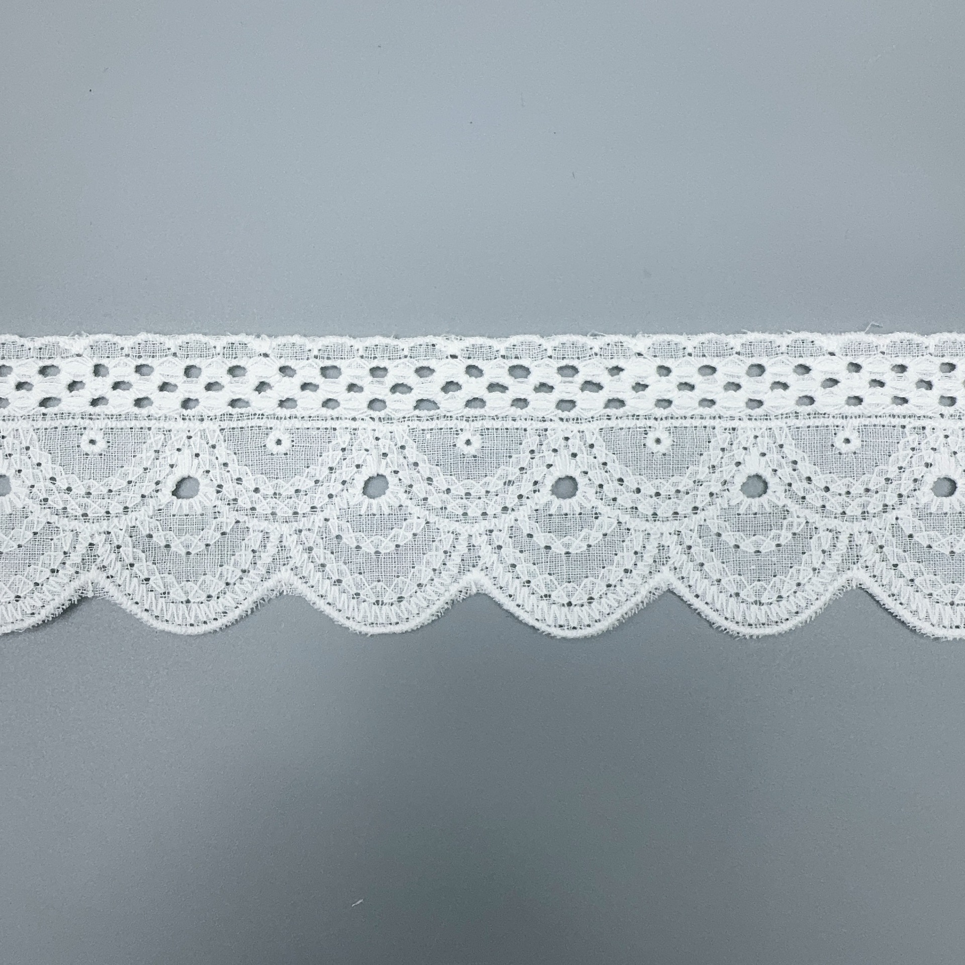 Embroidery edge products are manufactured in one piece, and it may occur that some positions have skipped stitches.It's normal.