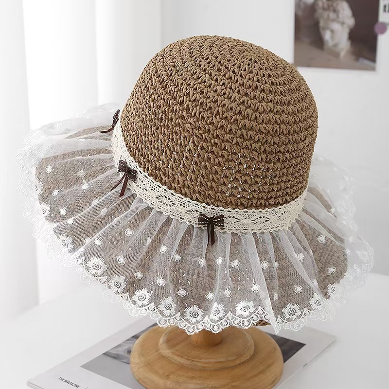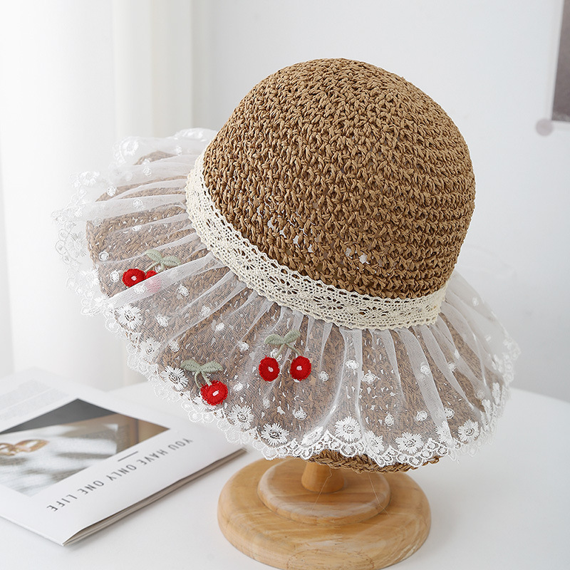 cherry lace edge small hat-khaki white flower