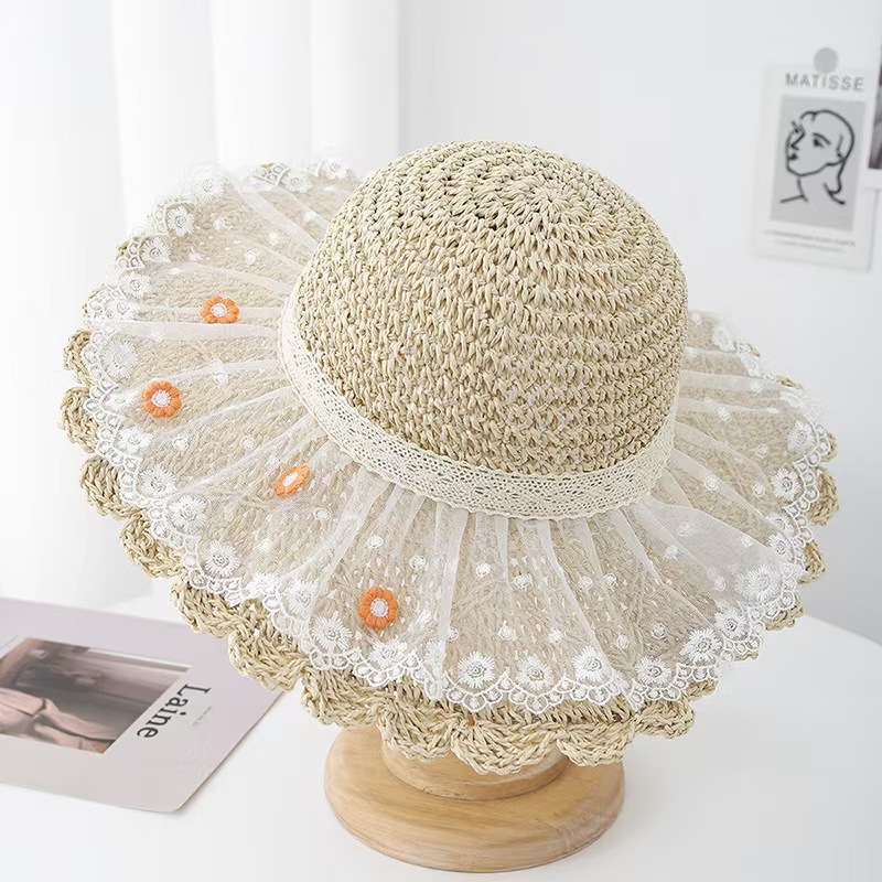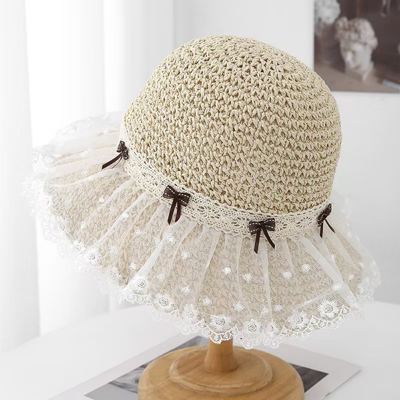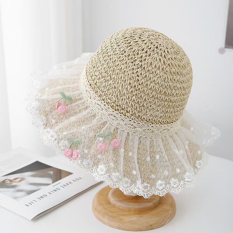 cherry lace edge small hat-beige white flower