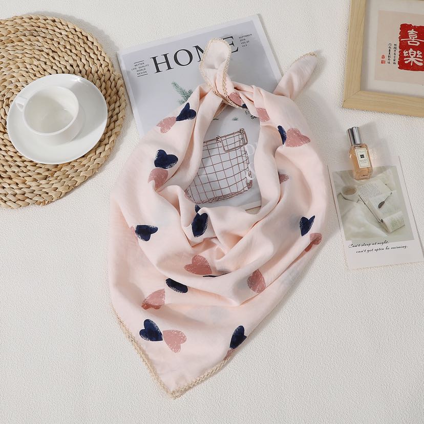 70 cotton and linen floral kerchief scarf women's korean-style all-match small fresh air literary decoration small scarf thin scarf 中文版