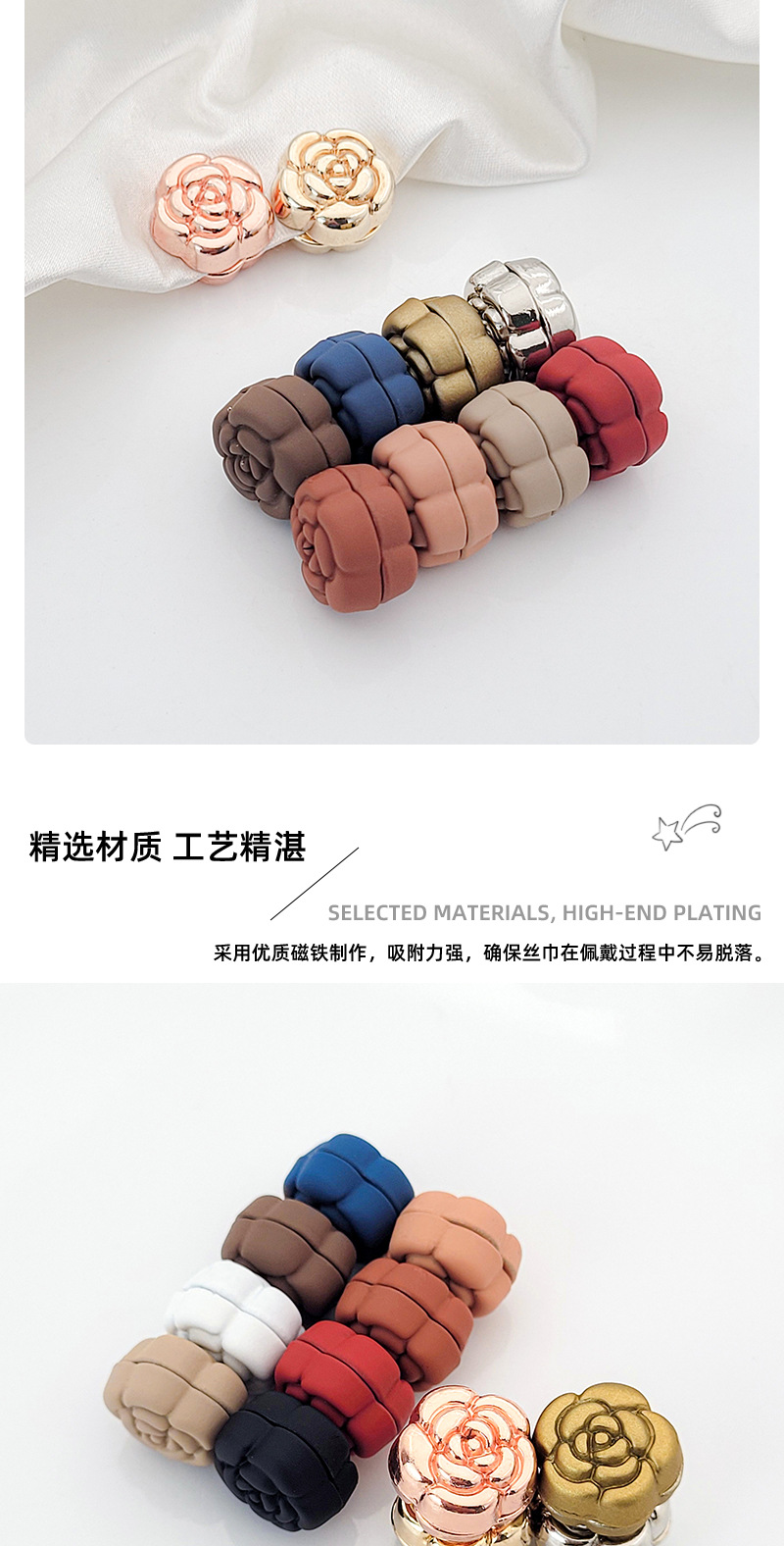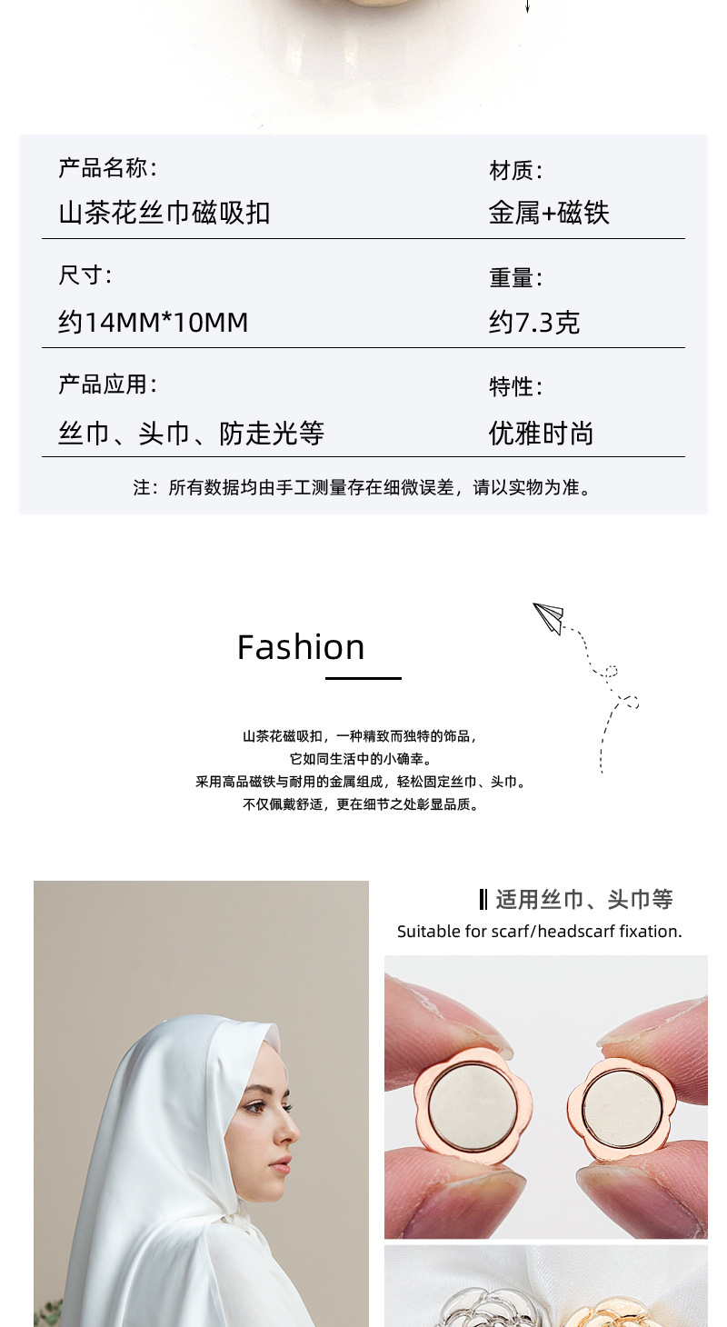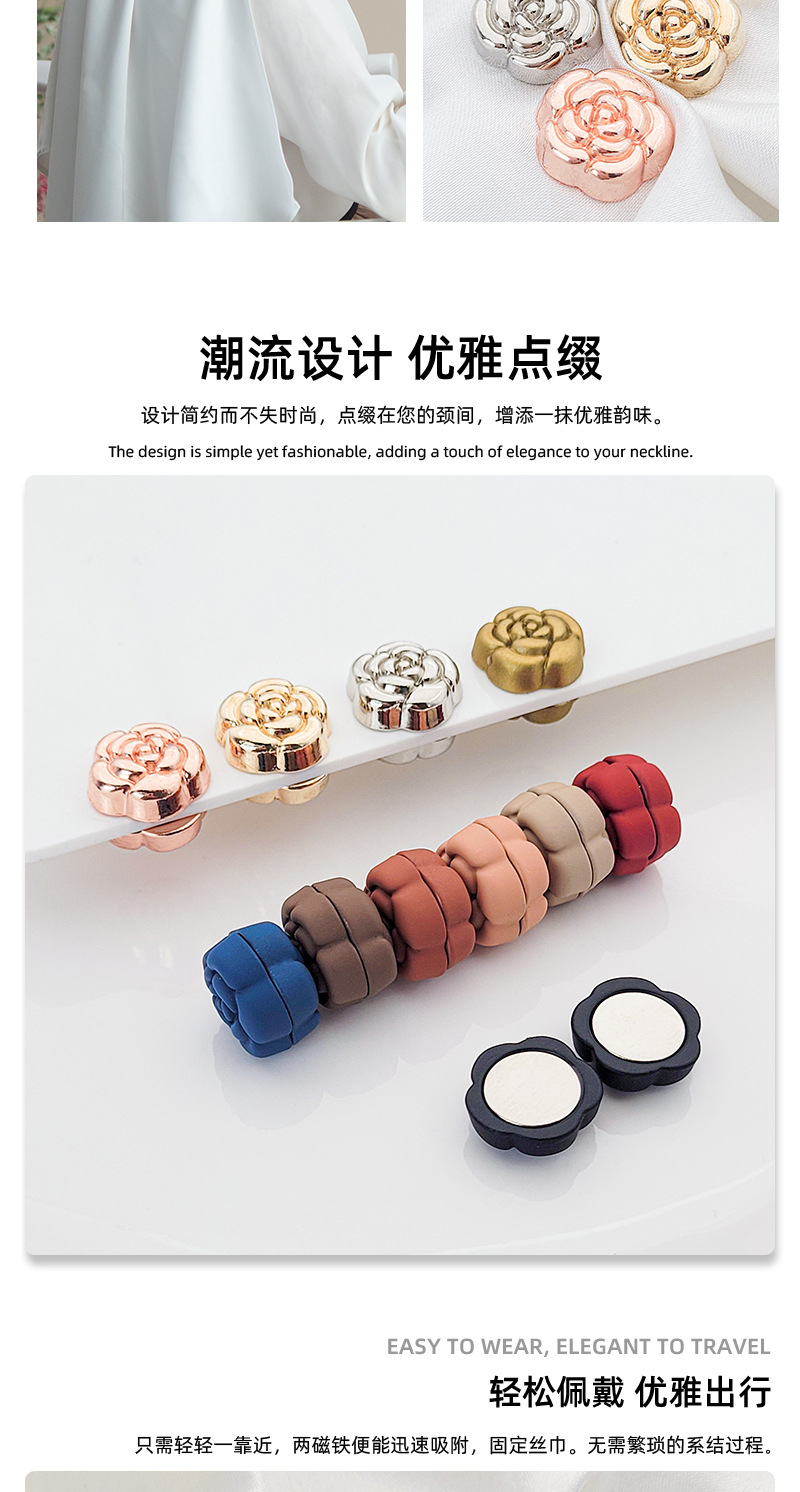 camellia brooch headscarf scarf buckle neckline clip anti-exposure magnetic buckle cross-border amazon new muslim magnetic snap 中文版