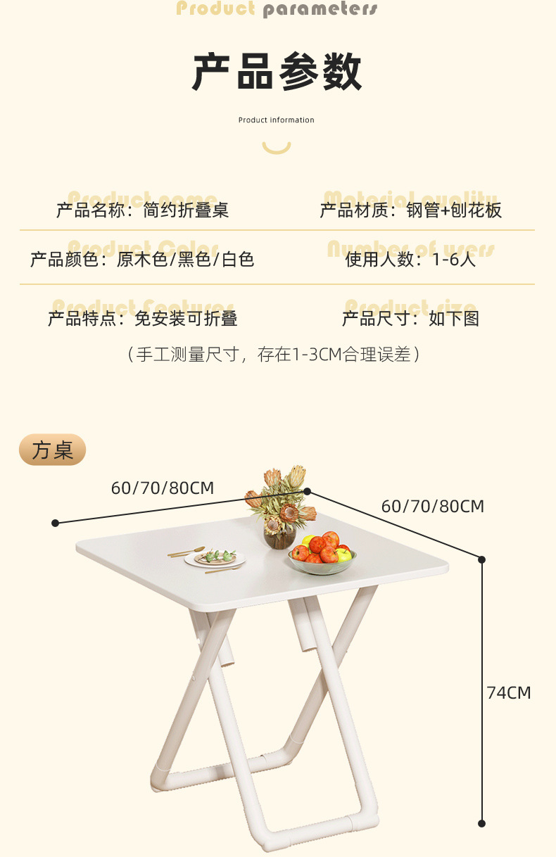 [installation-free foldable] white eight-immortal table long 60cm