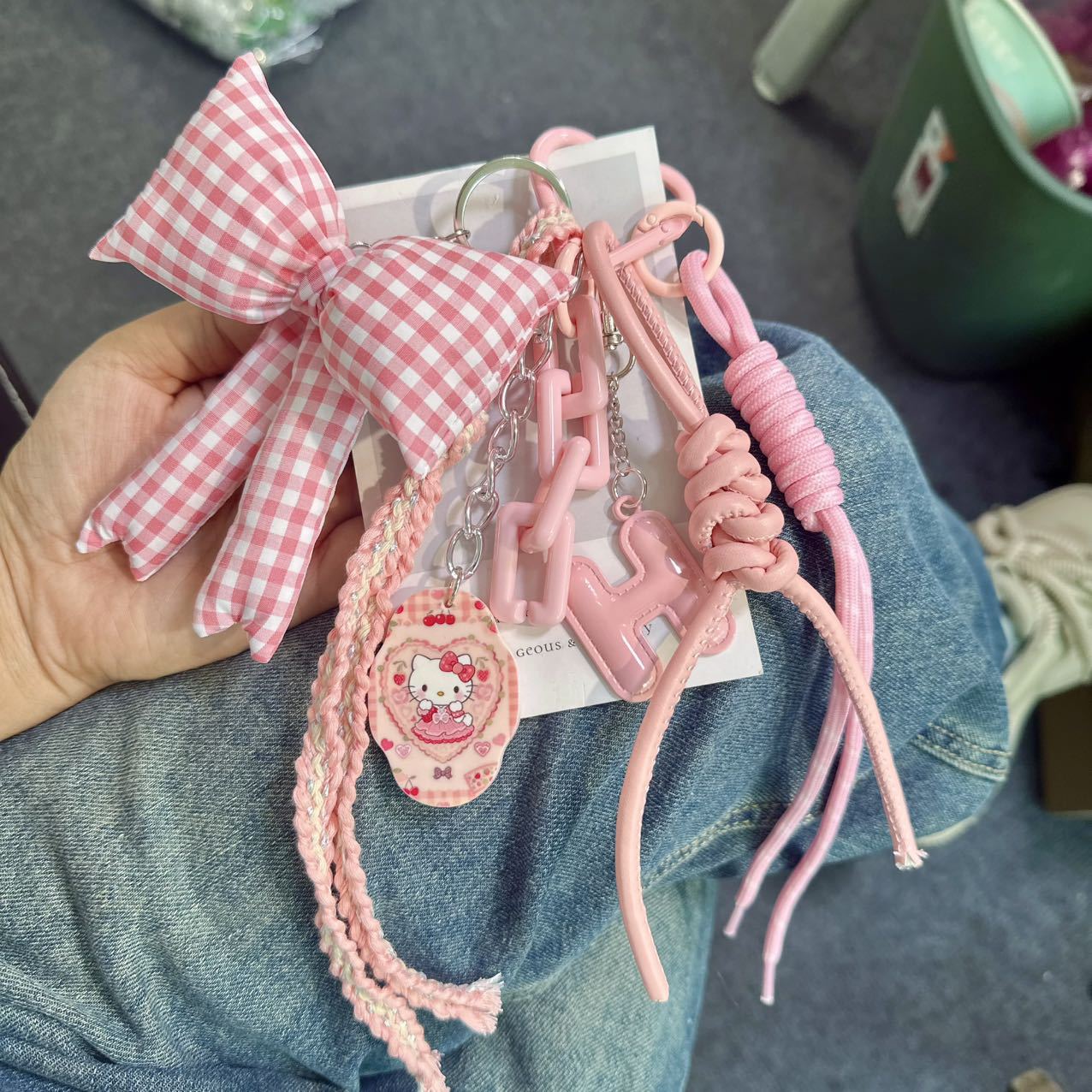 pink plaid bag hanging