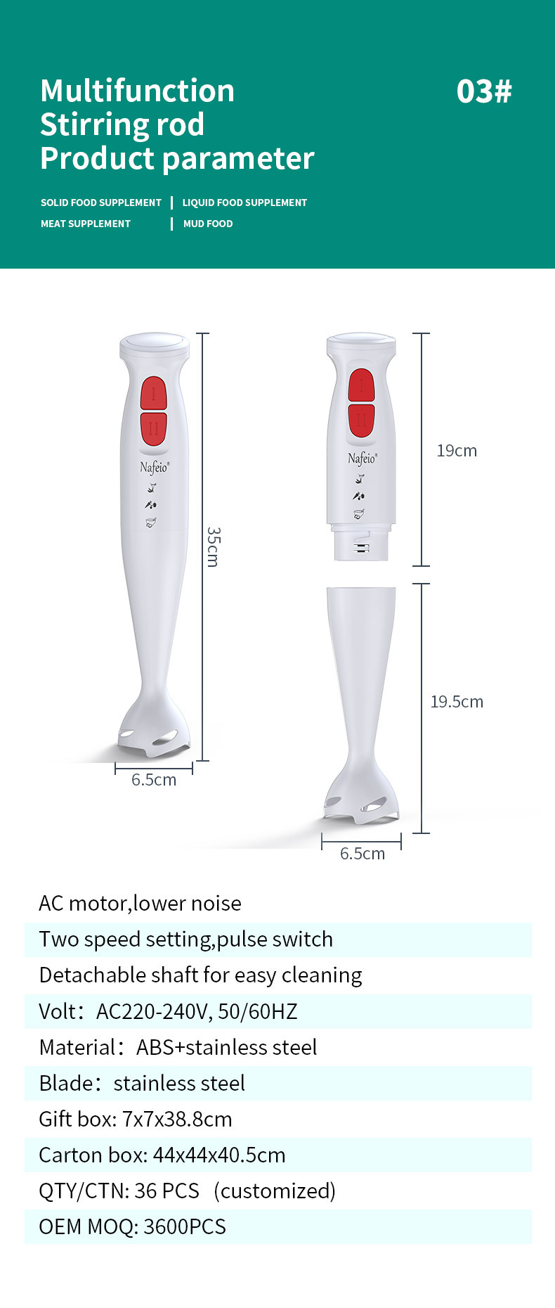 NafionNAFEIOHandheld Blender, Mixer, Multifunctional Mincer, Strainer, Blender, Mixing Bar