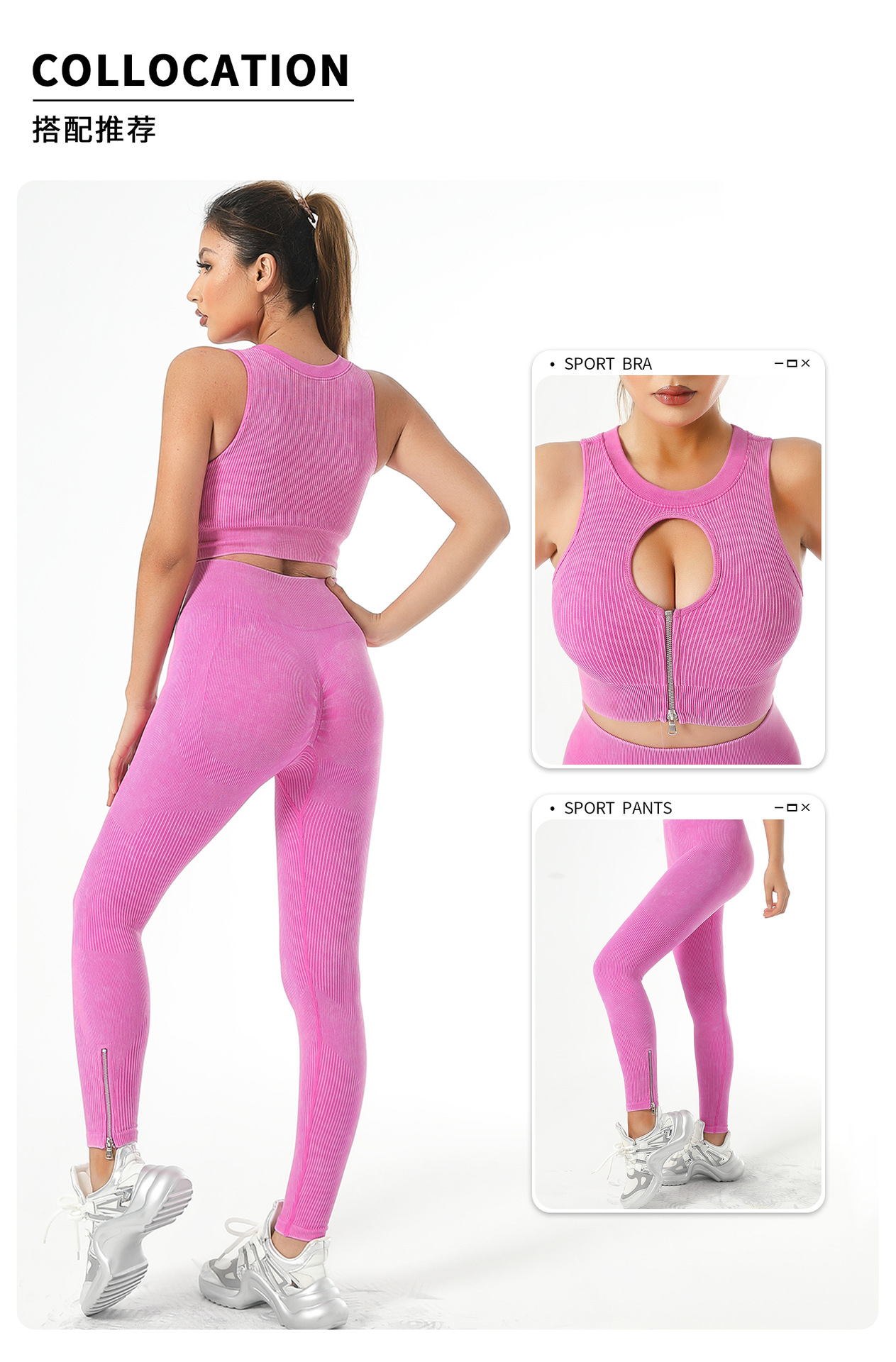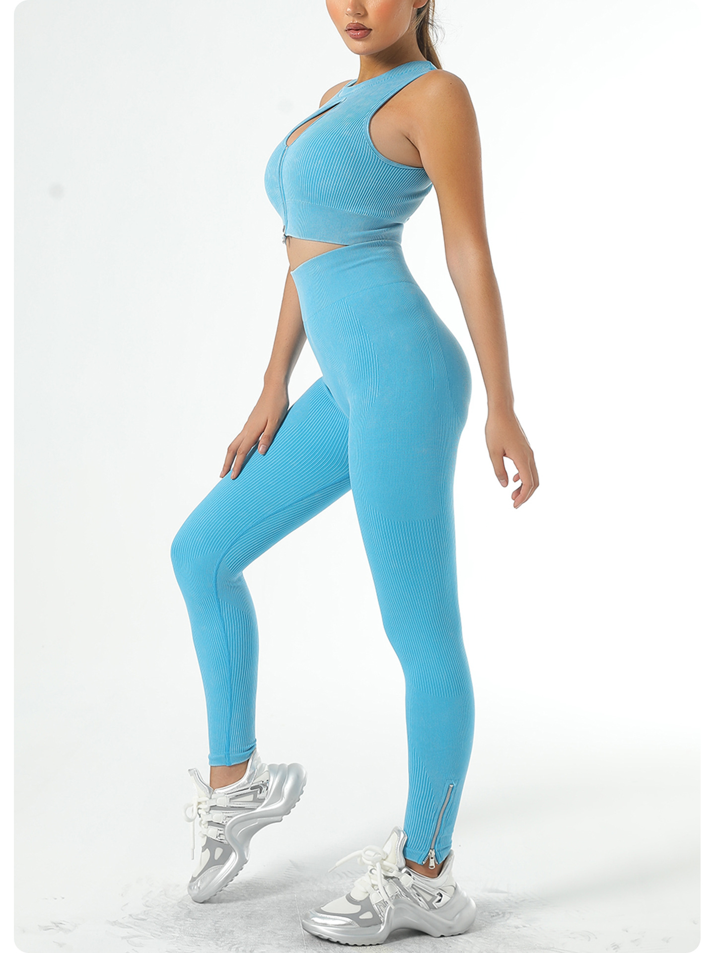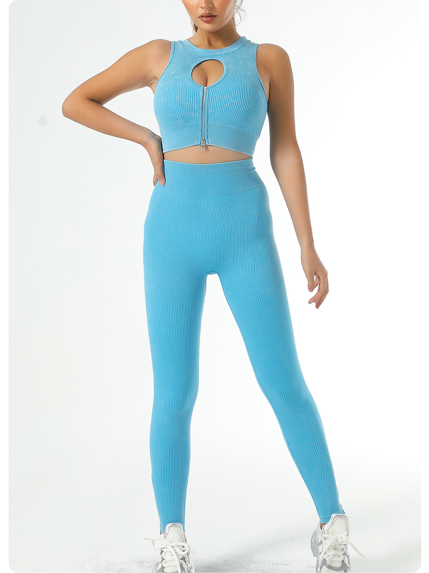 【ZheJin】European and American quick-drying yoga set of five pieces of sports outfit - anti-vibration yoga bra and fitness yoga trousers