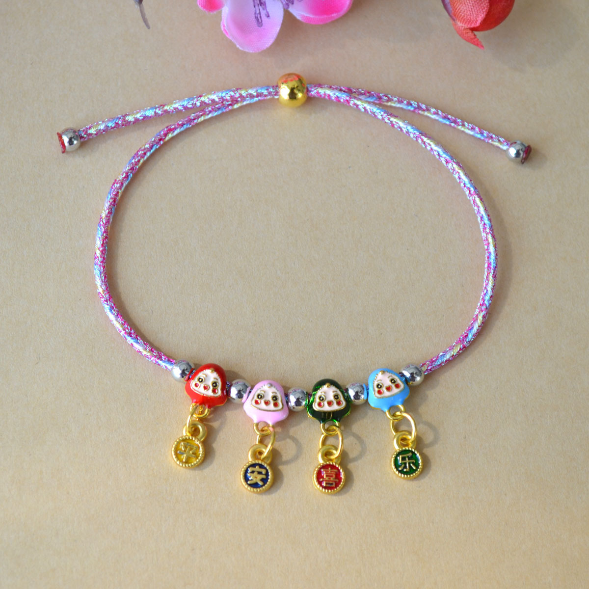 26067 colorful bamboo gourd pink and blue rope can be opened