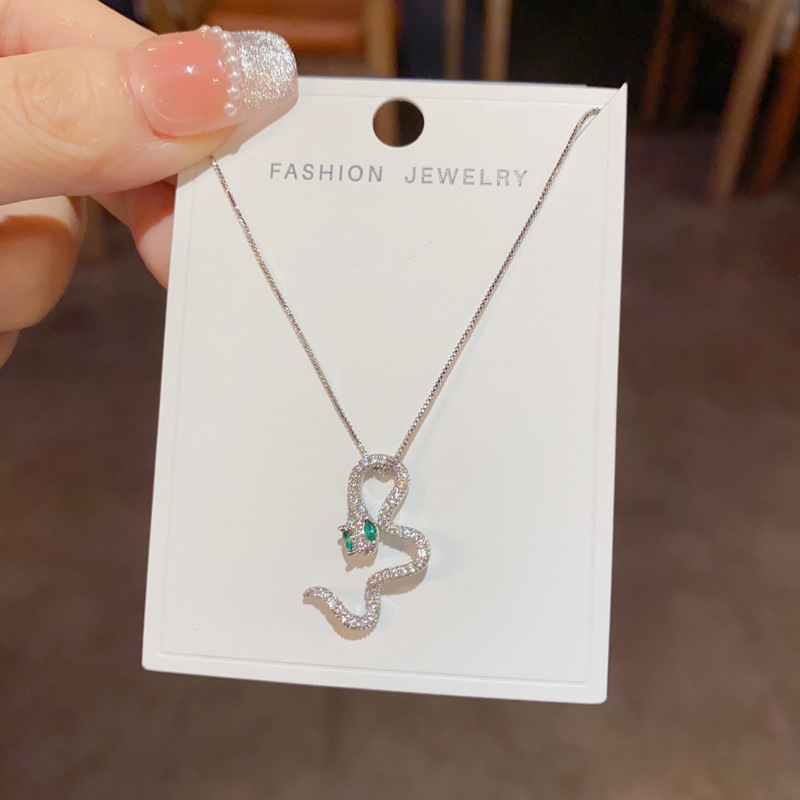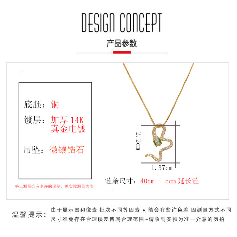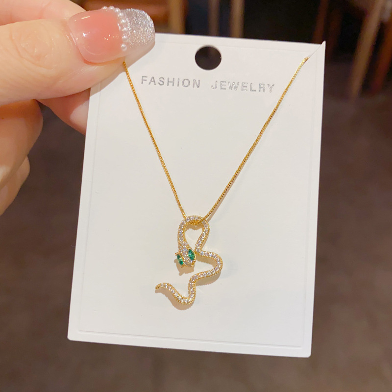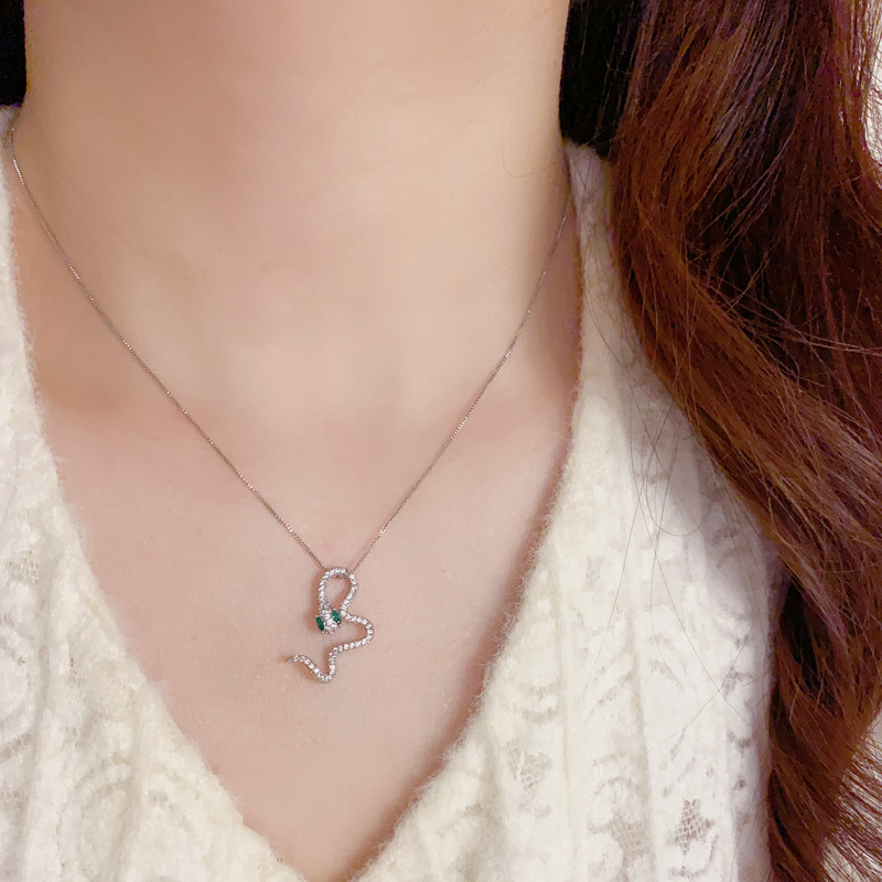 silver-zircon snake necklace (thick gold plating)
