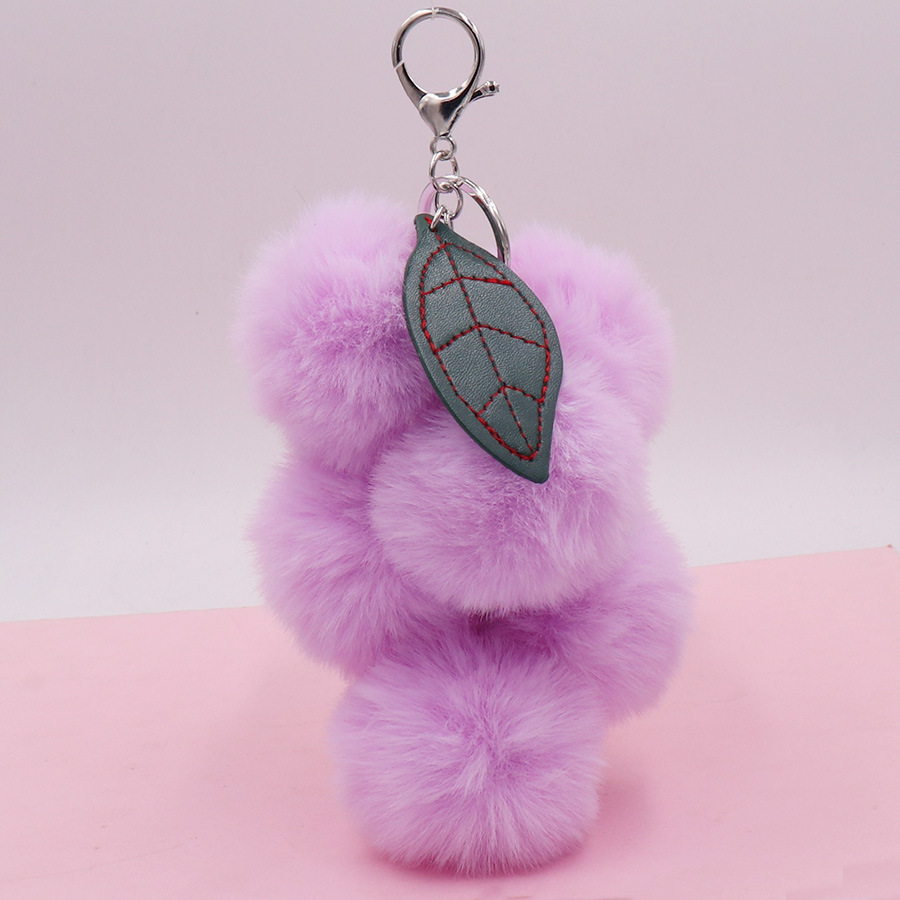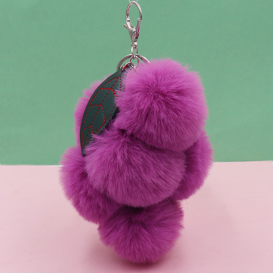 Furry grape ball keychain with cute fruit plush balls car keychain book bag ornament for women