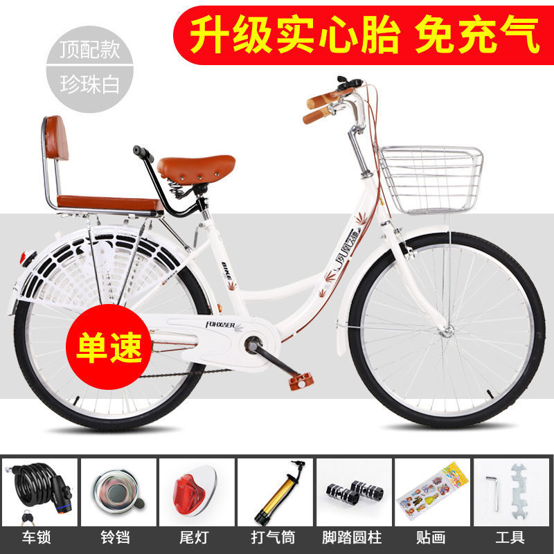 pearl white/high-end version [pneumatic tire]-26 inches/single speed [suitable for height 160-185]]