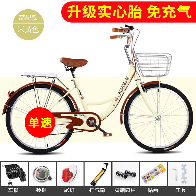 beige/high-end version [upgrade inflatable-free]-26 inches/single speed [suitable for height 160-185]]