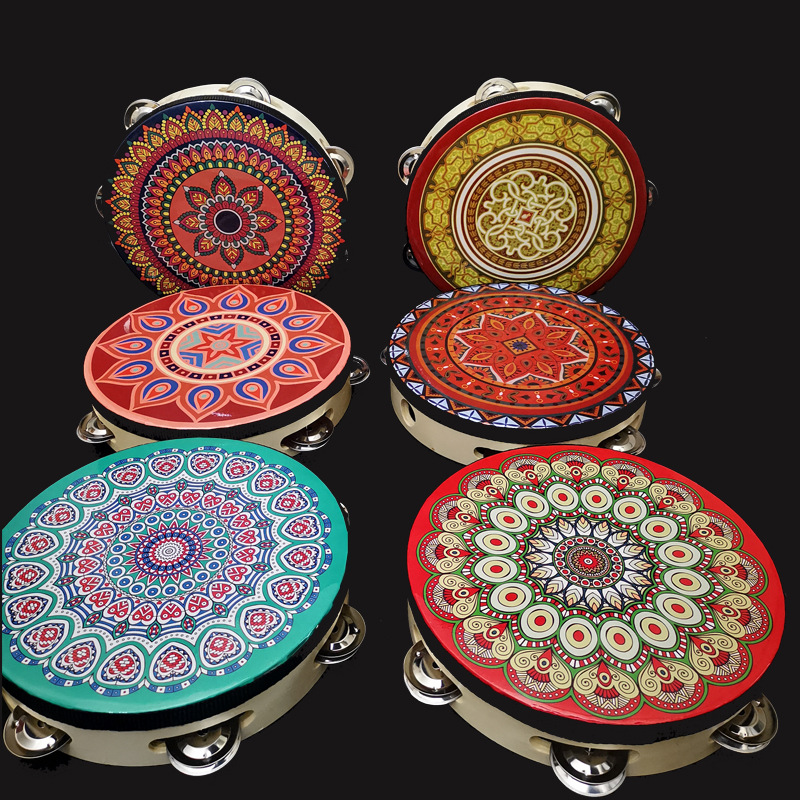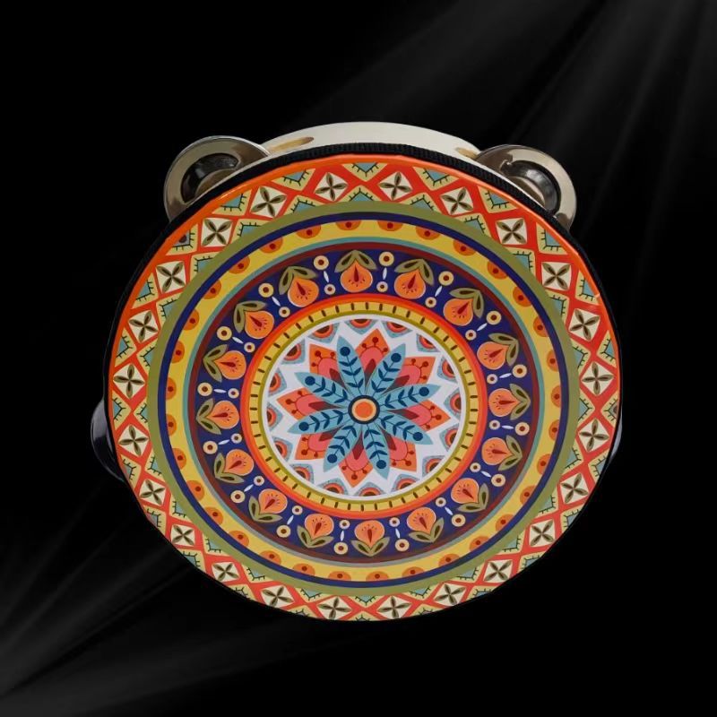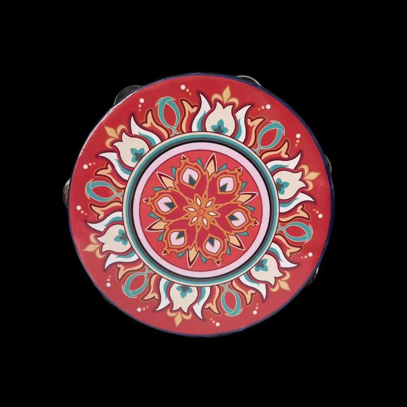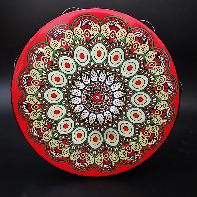 traditional red tambourine 6-inch single row