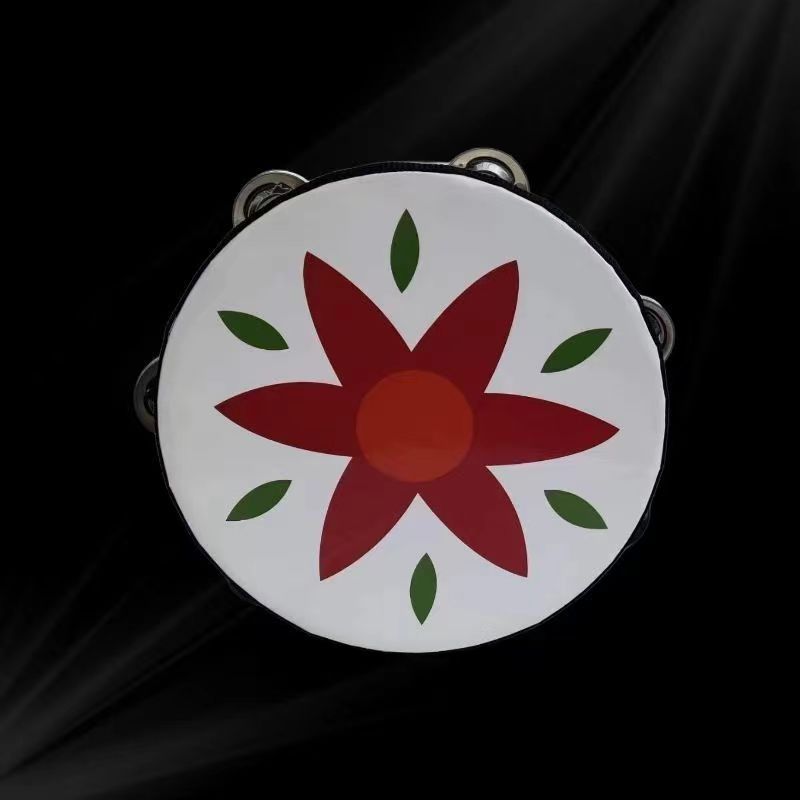 traditional red tambourine 8-inch single row