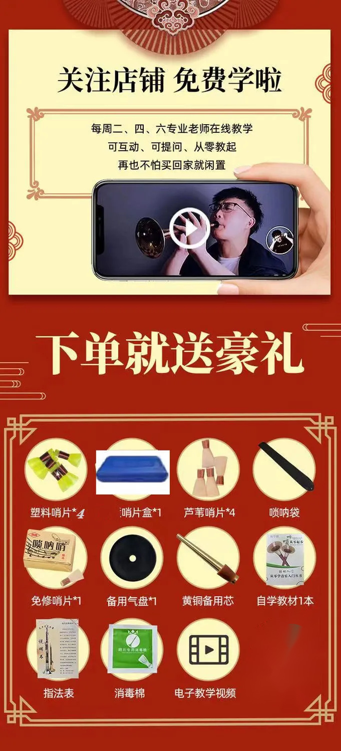 [short rod small suona horn] rosewood small f yellow bowl +7 gifts