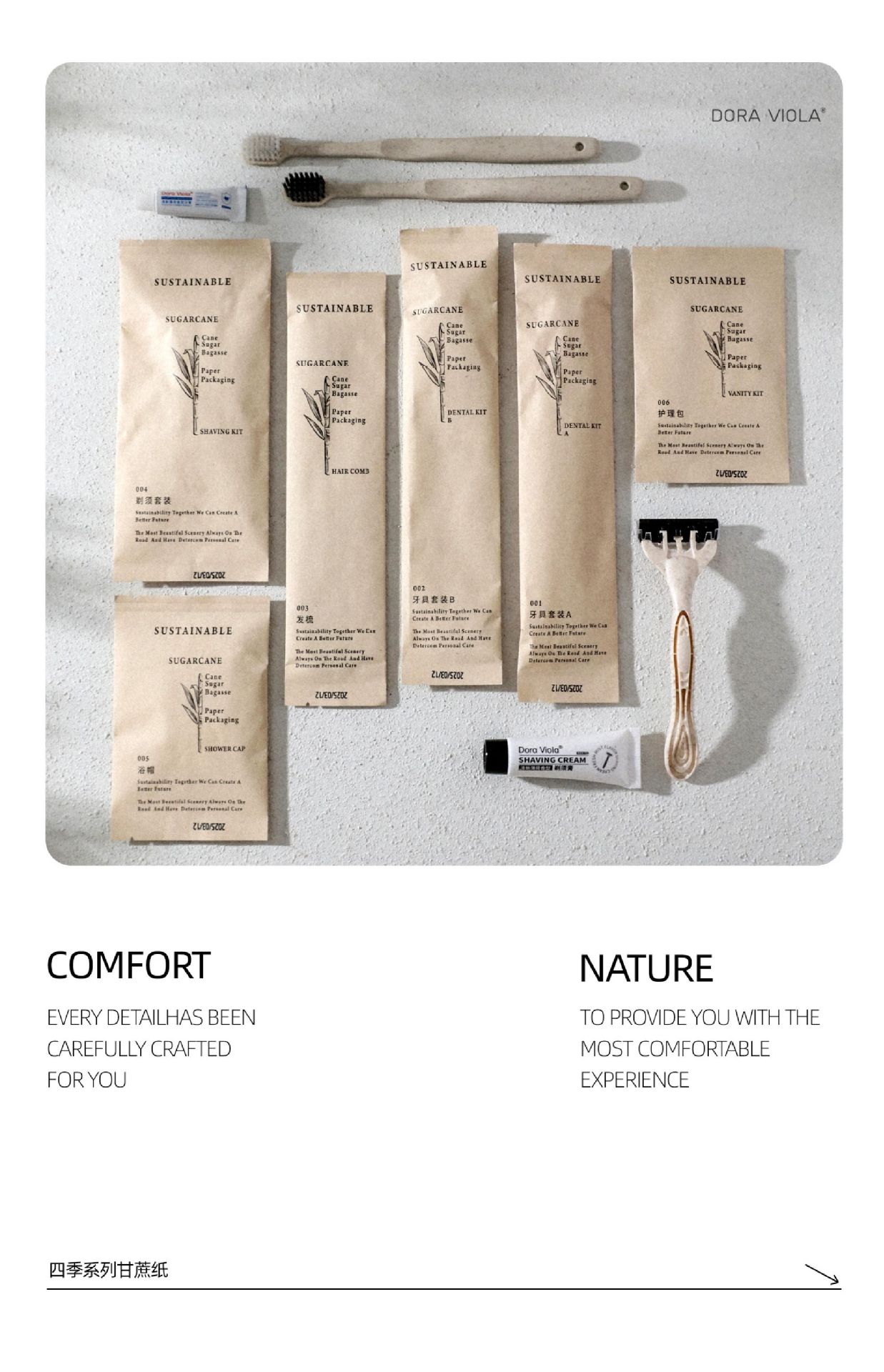 four:Disposable items (toothbrush, toothpaste, comb, soap, shampoo, body wash, razor, care kit, slippers, tissue paper, etc.)