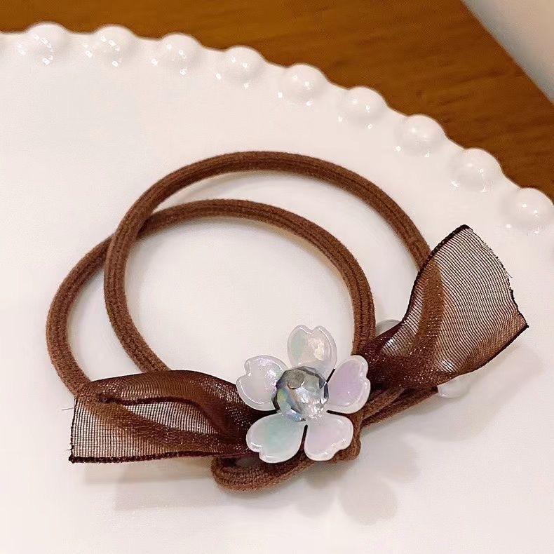 Petal Hair Rope Hair Band High-Grade Ribbon French Style Bow Hair Accessories Hair Rope Wholesale Rubber Band for Women 中文版