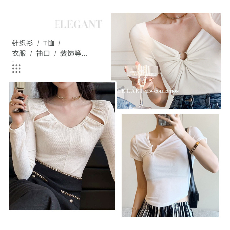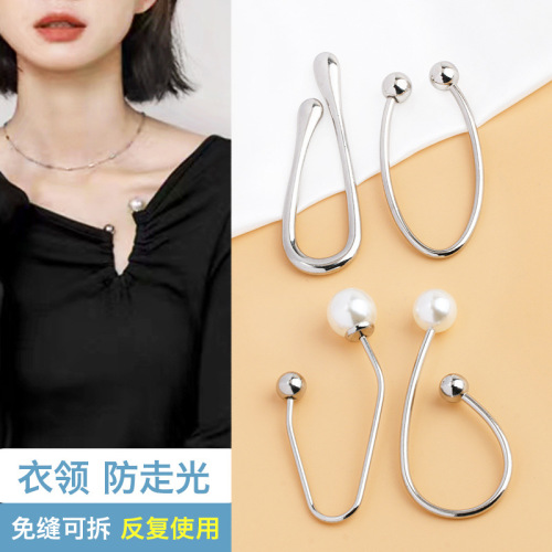 clothes shirt short sleeve dress neckline shrink adjustable buckle metal pearl spiral buckle collar anti-exposure button