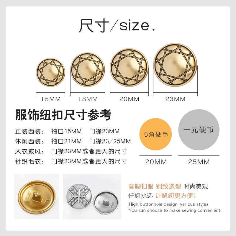 metal button rice cross pattern buckle female woolen coat trench coat business suit tailored suit shirt sweater coat button 中文版