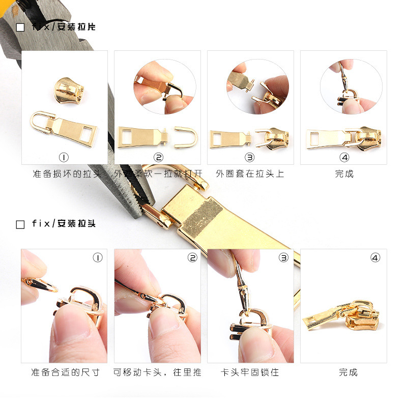 factory wholesale removable pull head clothing bag replacement accessories lock head zipper piece 3#5#8# metal zipper pull