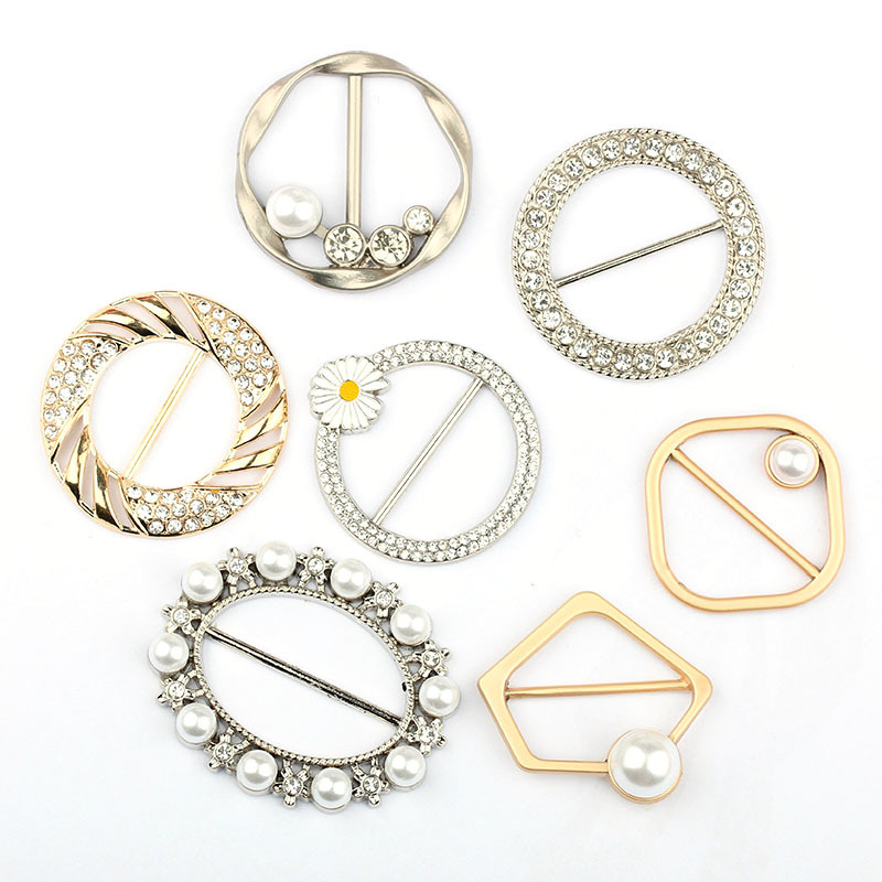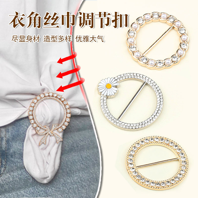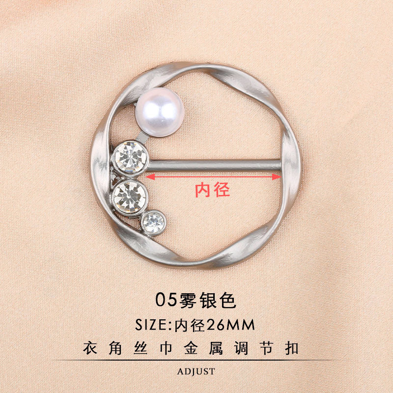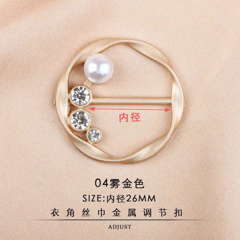 pearl metal scarf buckle corner knotted fixed decorative buckle golden spot goods wholesale round t-shirt adjustable buckle 中文版
