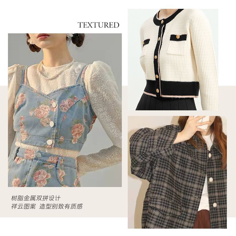 factory supply resin color double stitching overcoat and trench coat female suit knitwear clothes buttons metal xiangyun buttons 中文版