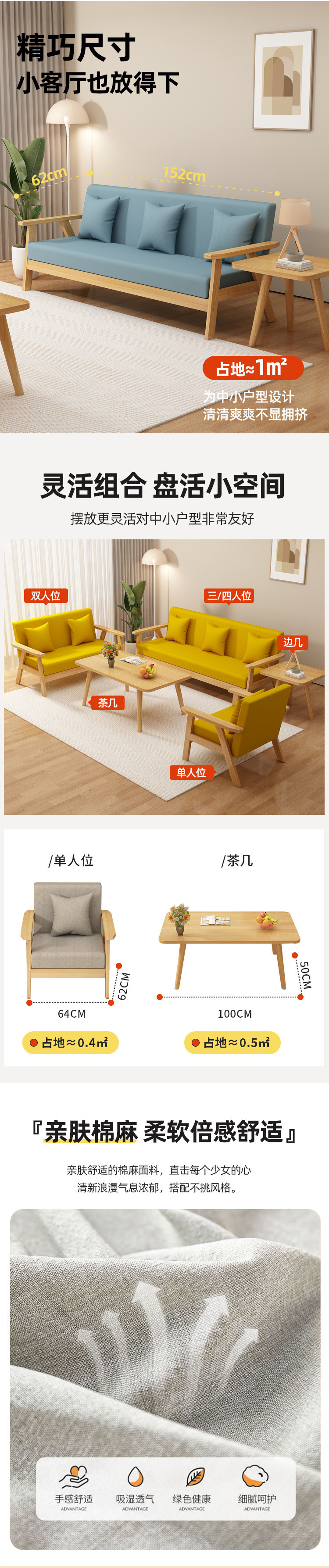 | [combination] single + double + three + tea table + side table + free pillow | ¥958.75 | 1000 piece available |