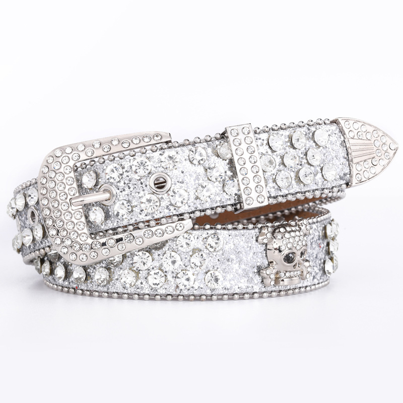 【Product Name】: Diamond-Embellished Leather Belt for Women with Skeleton Head and Diamond-Studded Sequins Jeans Belt