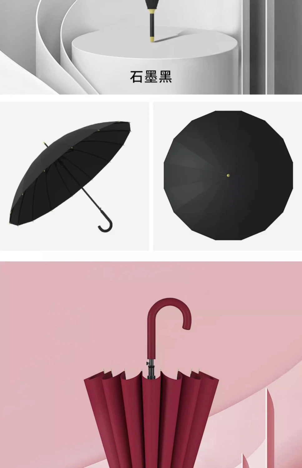 | [curved handle] 16-bone curved handle umbrella-classic black (550) | ¥21.85 | 999999 piece available |