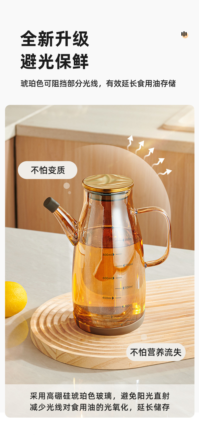[platinum color] 1000ml borosilicate heat-resistant explosion-proof oil pot