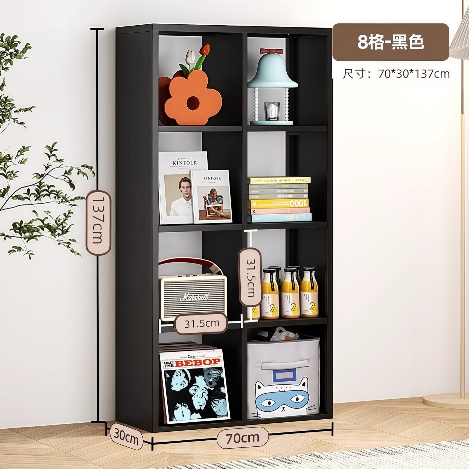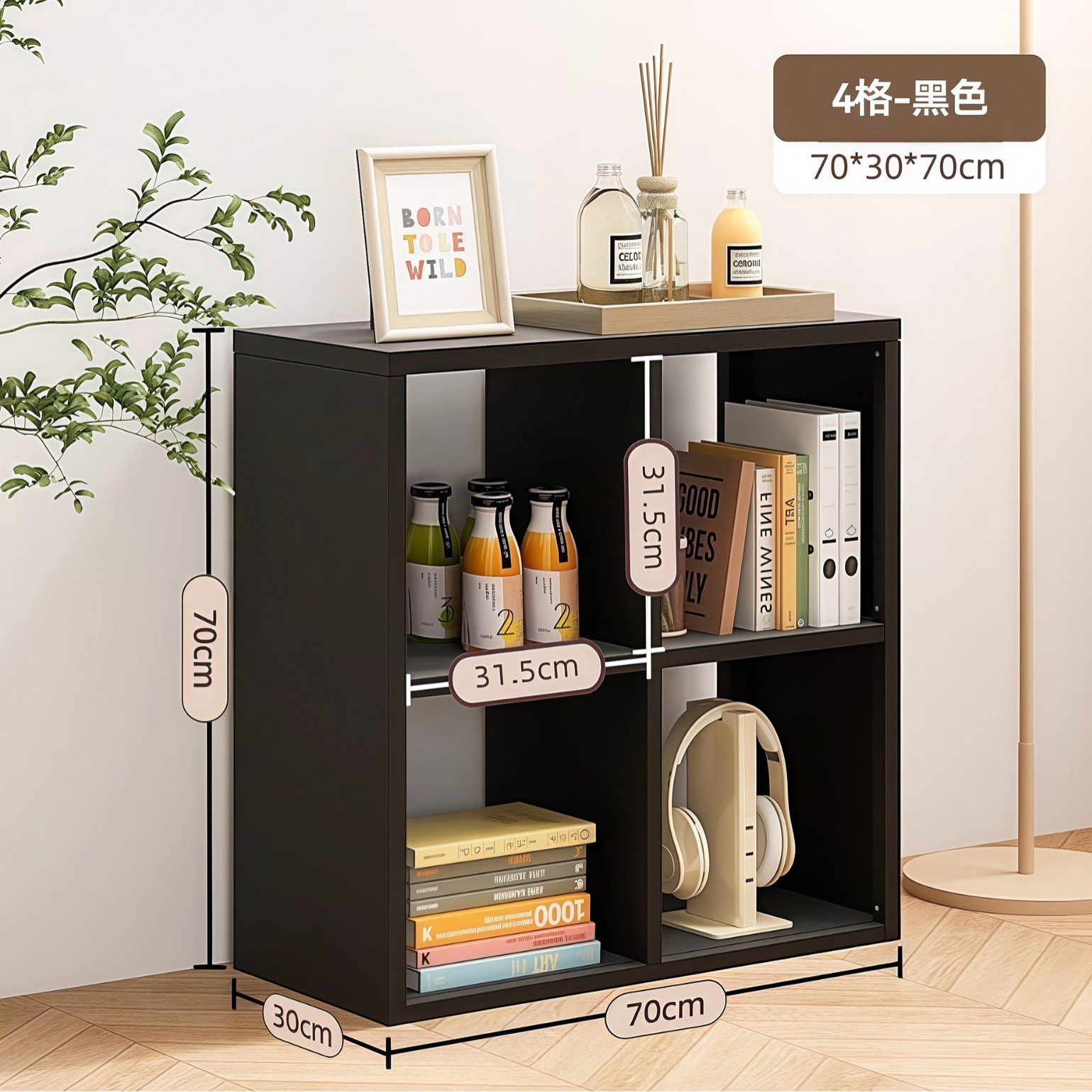 grid cabinet four layers and two columns-black 700*300*1378