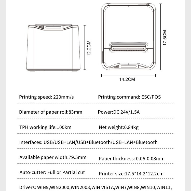 pos-8370 -usb + network port white english european standard for foreign use