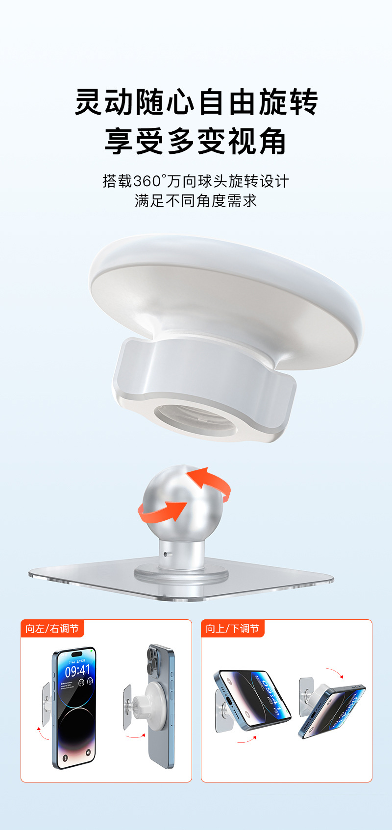 4.多角度调节:万向球头+旋转磁吸,360“丝滑任意旋转