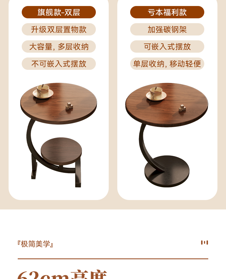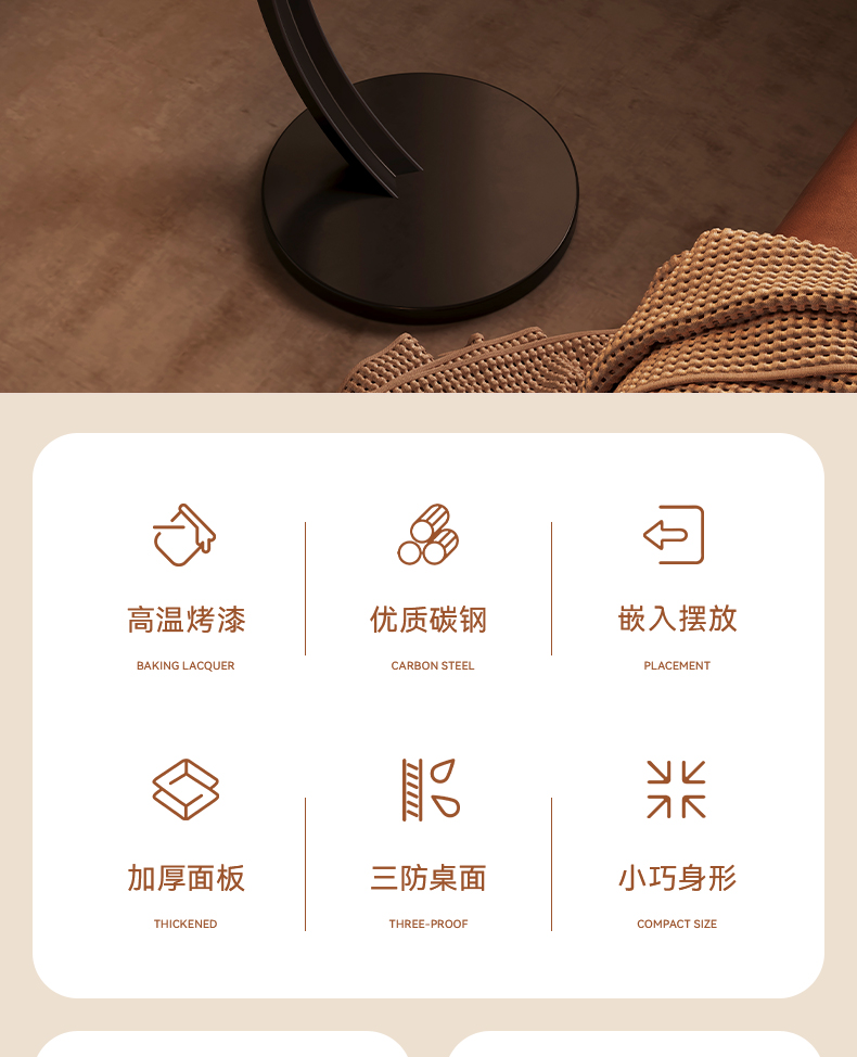 [stable upgrade round single layer] walnut color-t type carbon steel frame