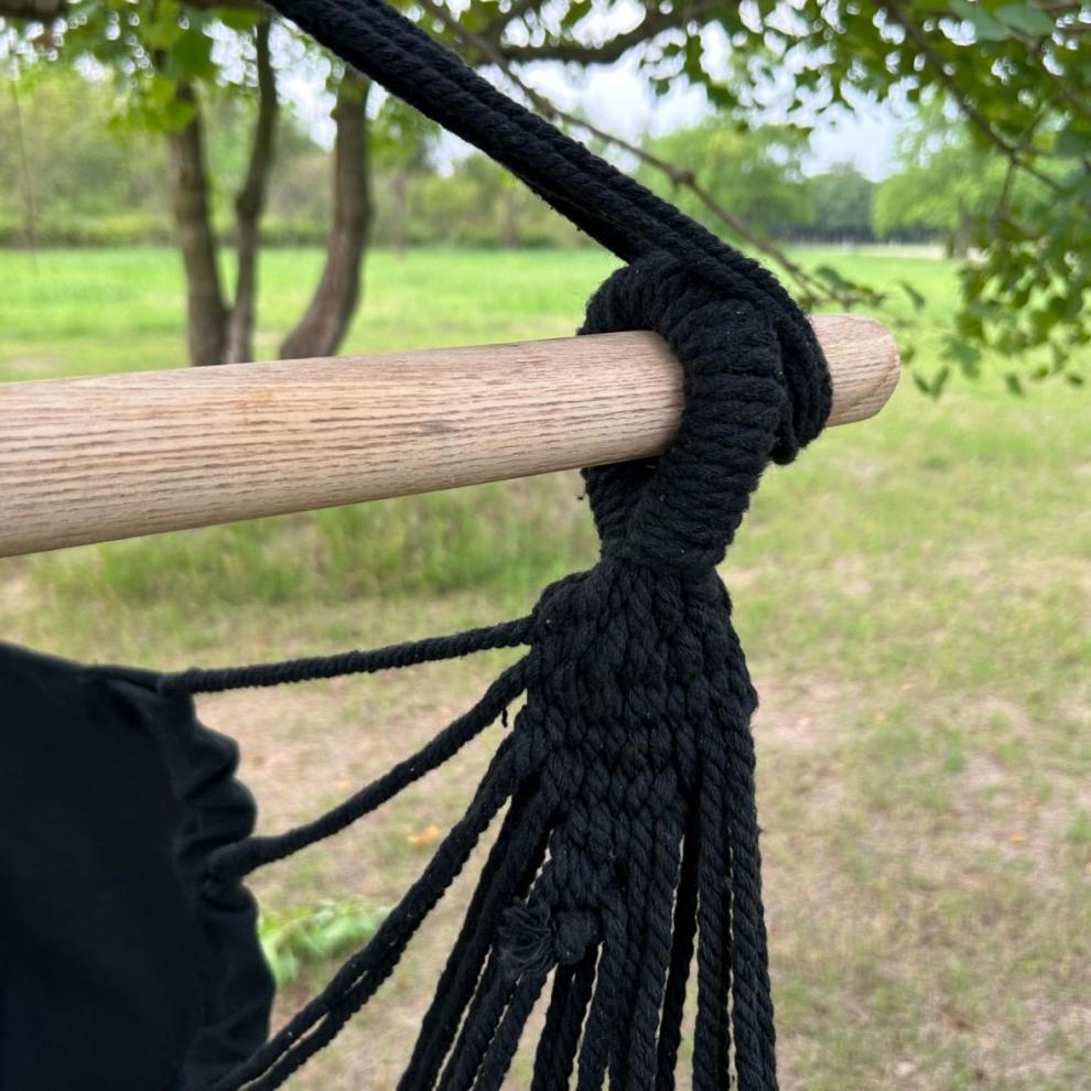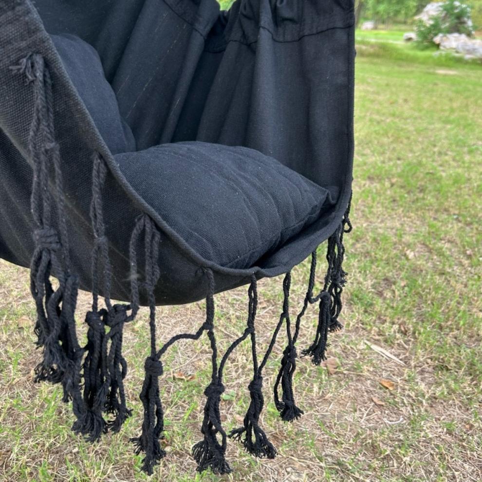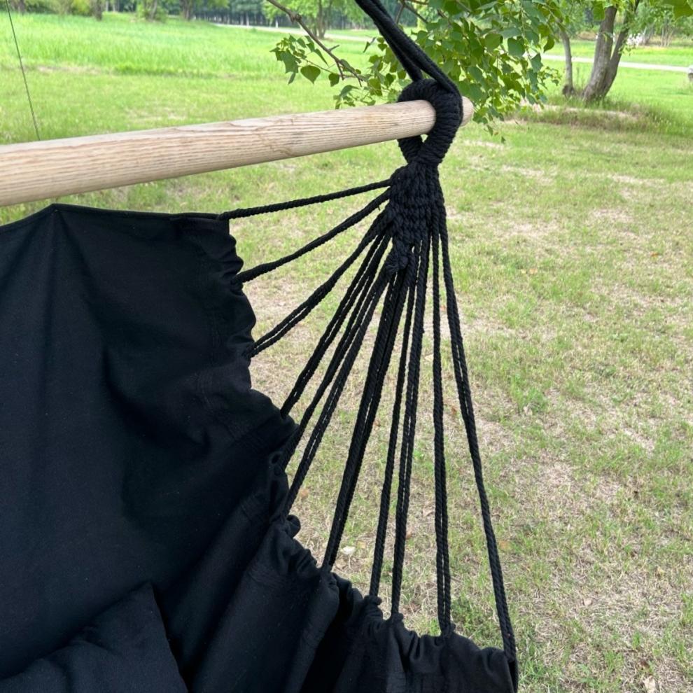black glider + two cushions + wooden sticks [no tassels]]