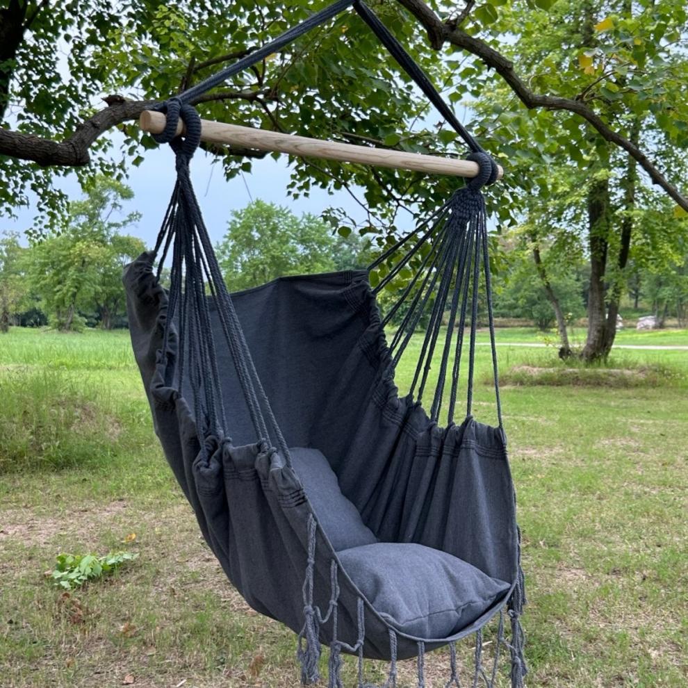 black glider + two cushions + wooden stick [tassel style]]