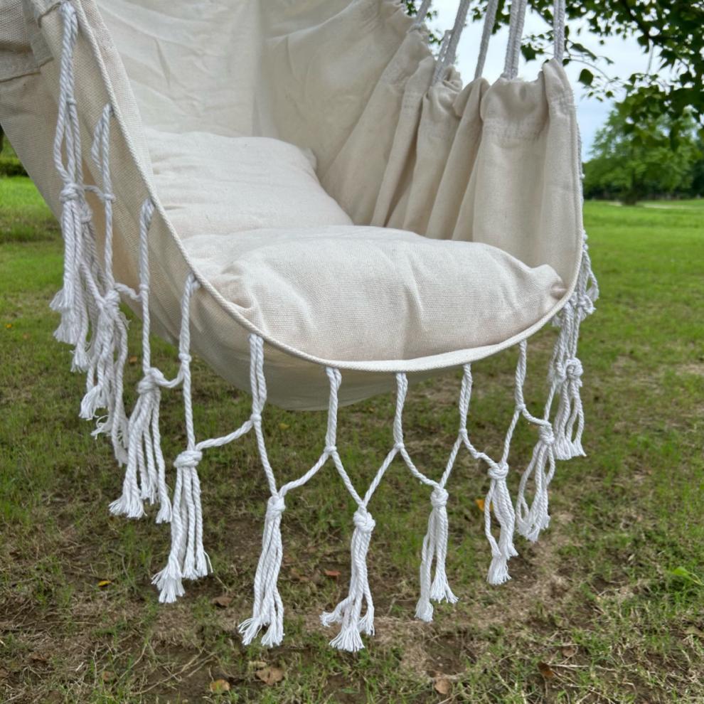white glider + two cushions + wooden stick [tassel style]]