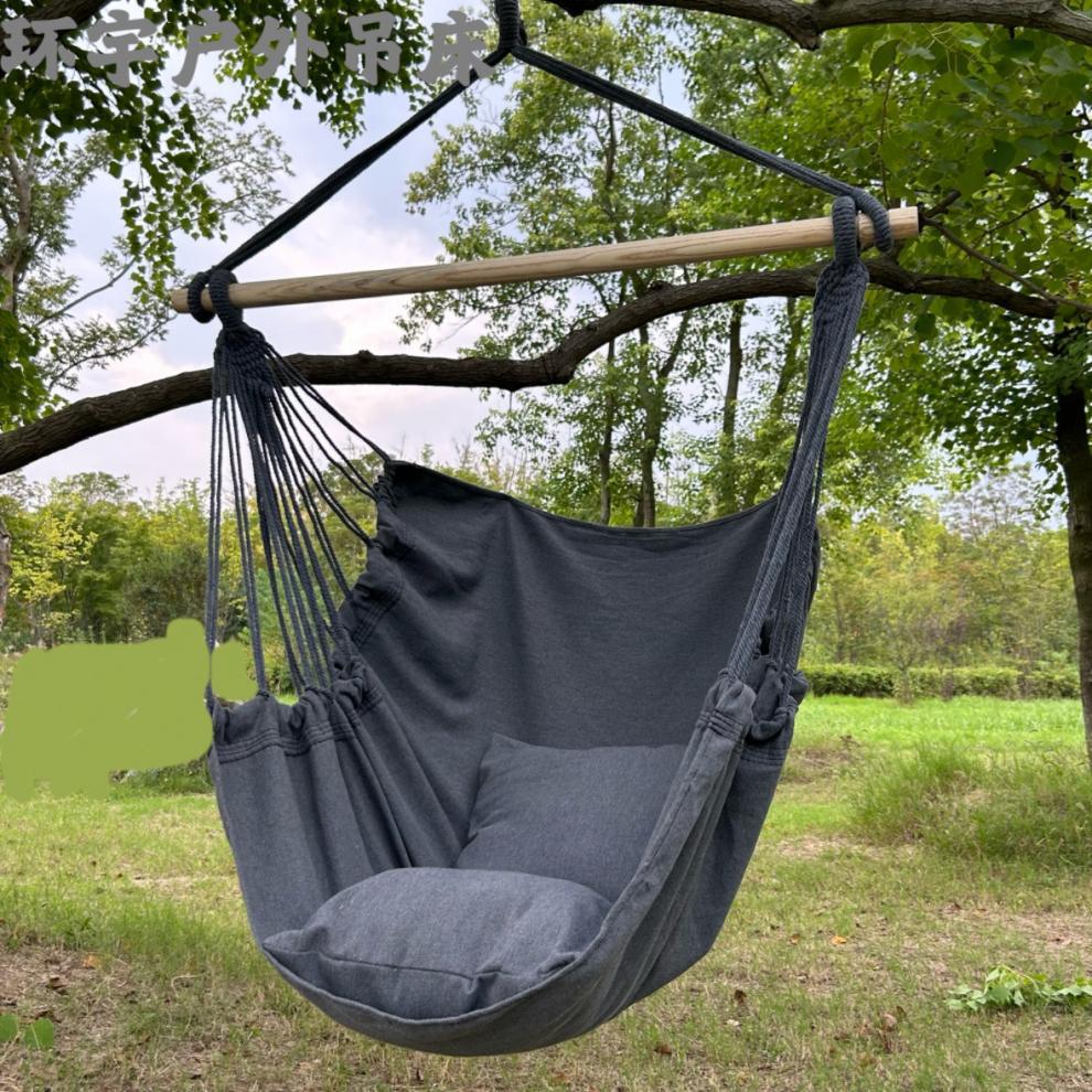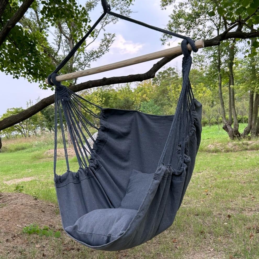 gray glider + two cushions + wooden sticks [no tassels]]