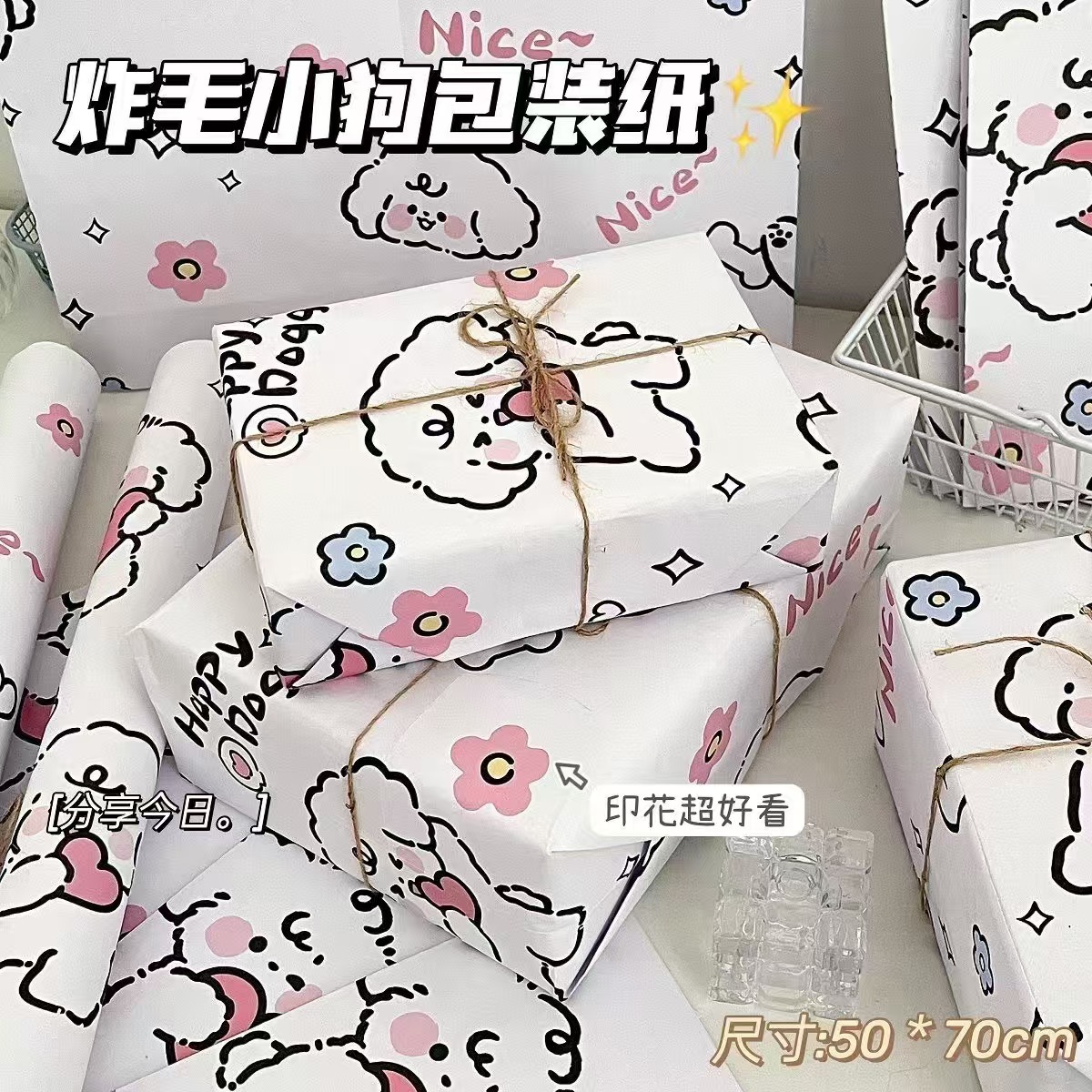 heart-shaped fried puppy wrapping paper; 6 folded wrapping paper 50 * 70cm per pack