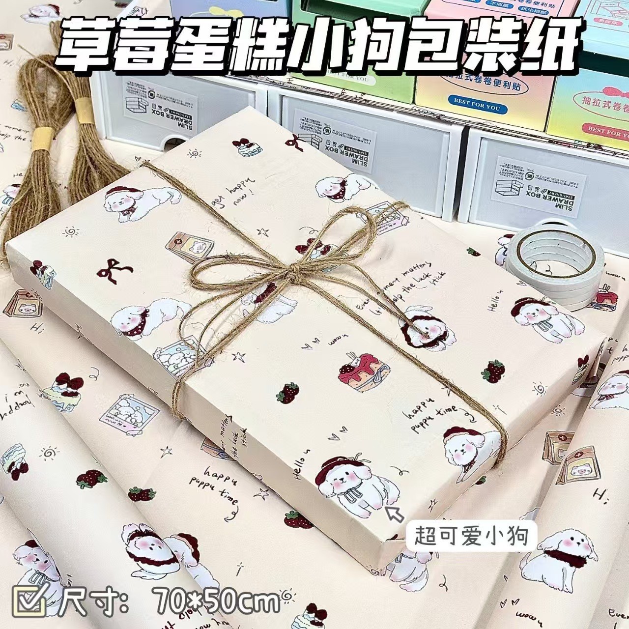 beige strawberry cake dog wrapping paper; each pack has 6 folded wrapping paper 50 * 70cm