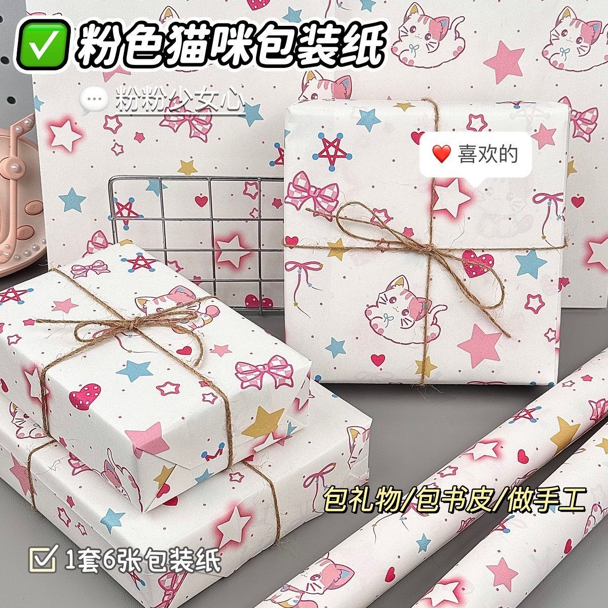 pink xingx cat; each pack has 6 folded wrapping paper 50 * 70cm