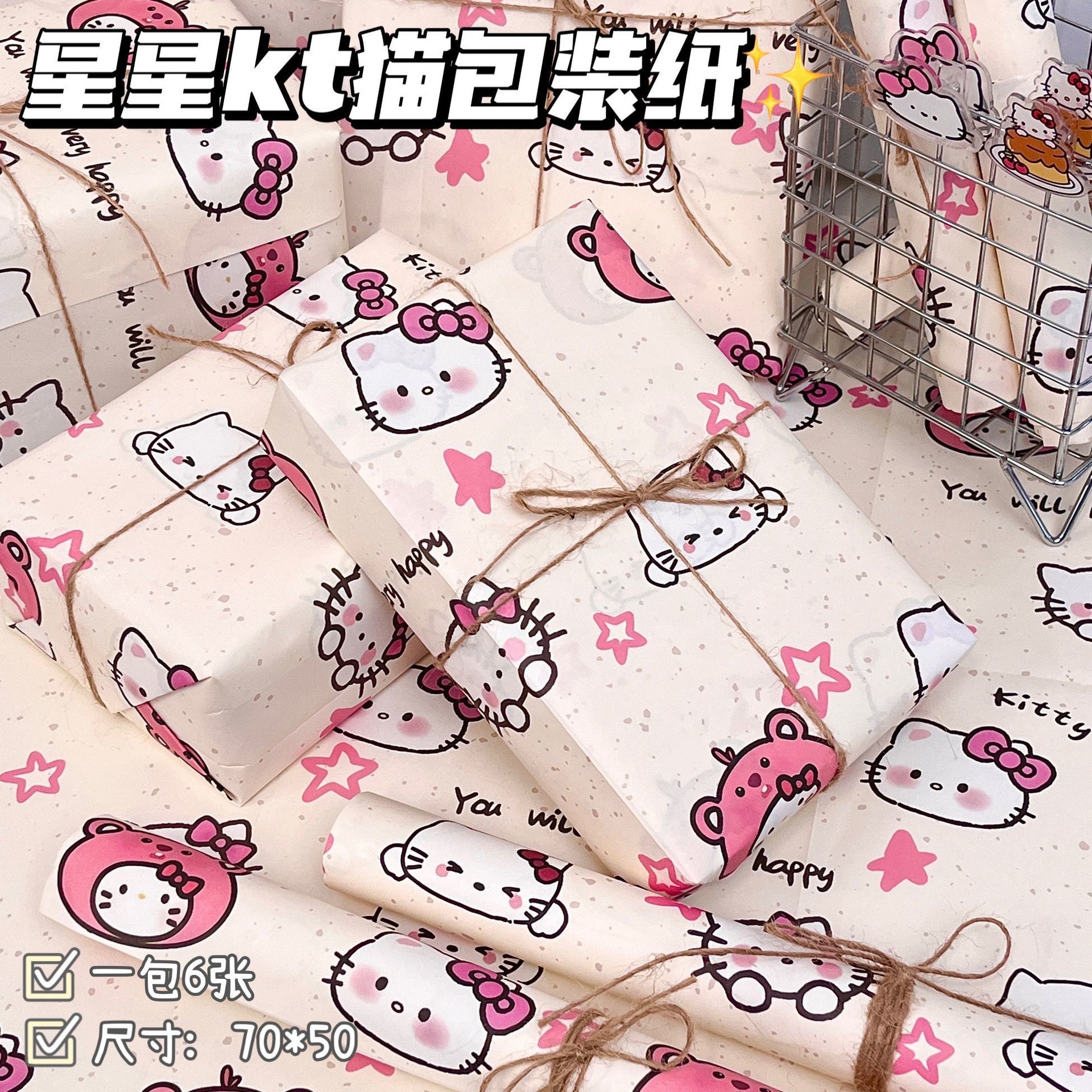 hello kitty wrapping paper; each pack has 6 folded wrapping paper 50 * 70cm